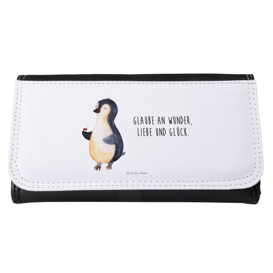 Wenn du auf der Suche nach dem perfekten Geschenk bist, dann ist das Damen Portemonnaie mit dem süßen Pinguin Marienkäfer-Motiv aus der Pinguin-Kollektion von Mr. & Mrs. Panda genau das Richtige für dich! Dieses hochwertige Portemonnaie, das mit liebevollen Motiven und dem inspirierenden Slogan "Glaube an Wunder, Liebe und Glück" bedruckt ist, bringt Freude und Lebensfreude in deinen Alltag.