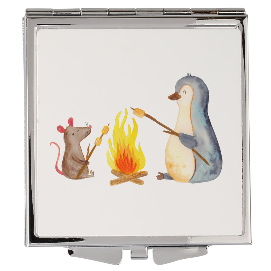 Handtaschenspiegel quadratisch Pinguin Lagerfeuer - ohne Spruch - Weiß