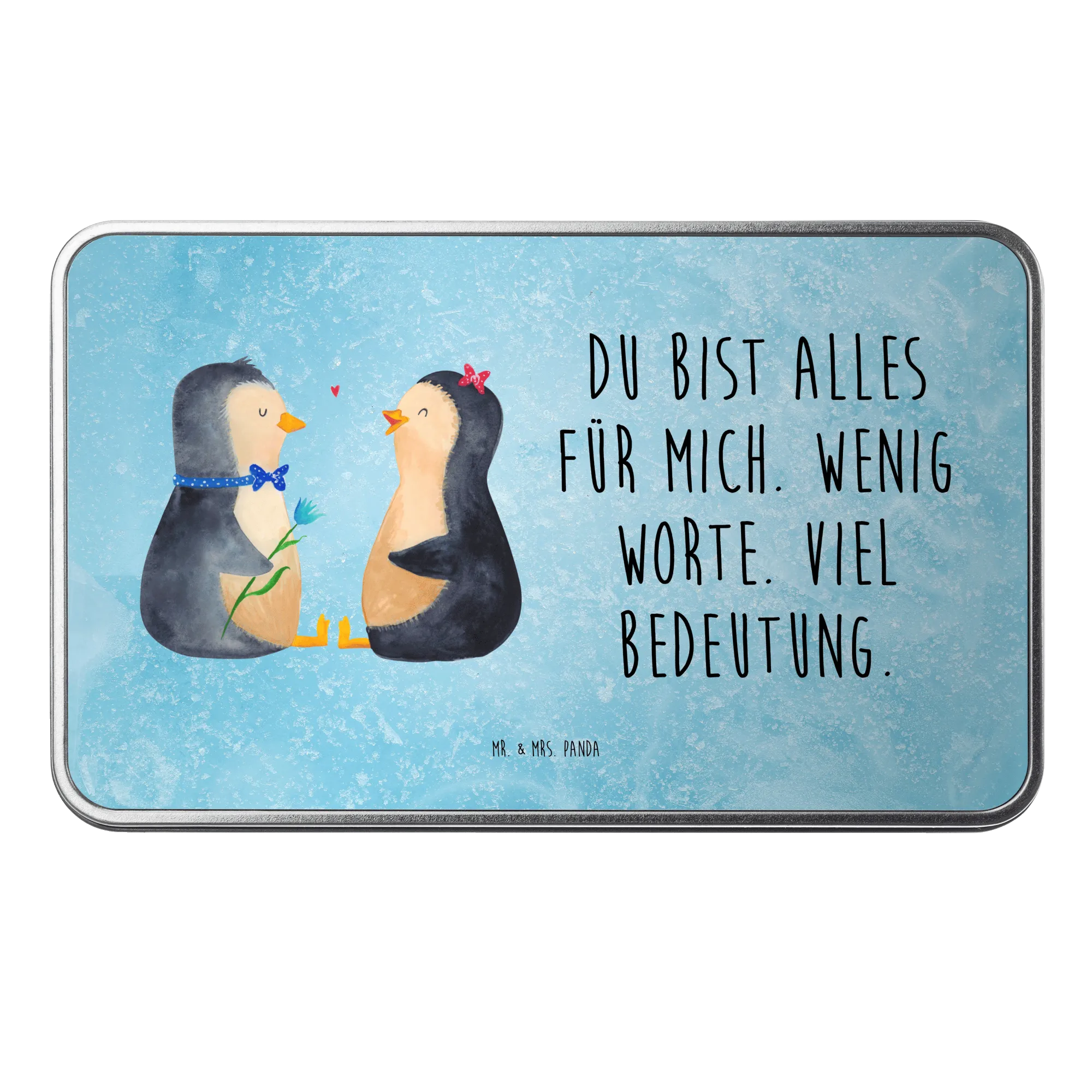 Du suchst nach dem perfekten Geschenk für deine große Liebe? Die rechteckige Metalldose mit dem bezaubernden Pinguin Pärchen von Mr. & Mrs. Panda ist genau das richtige für dich!