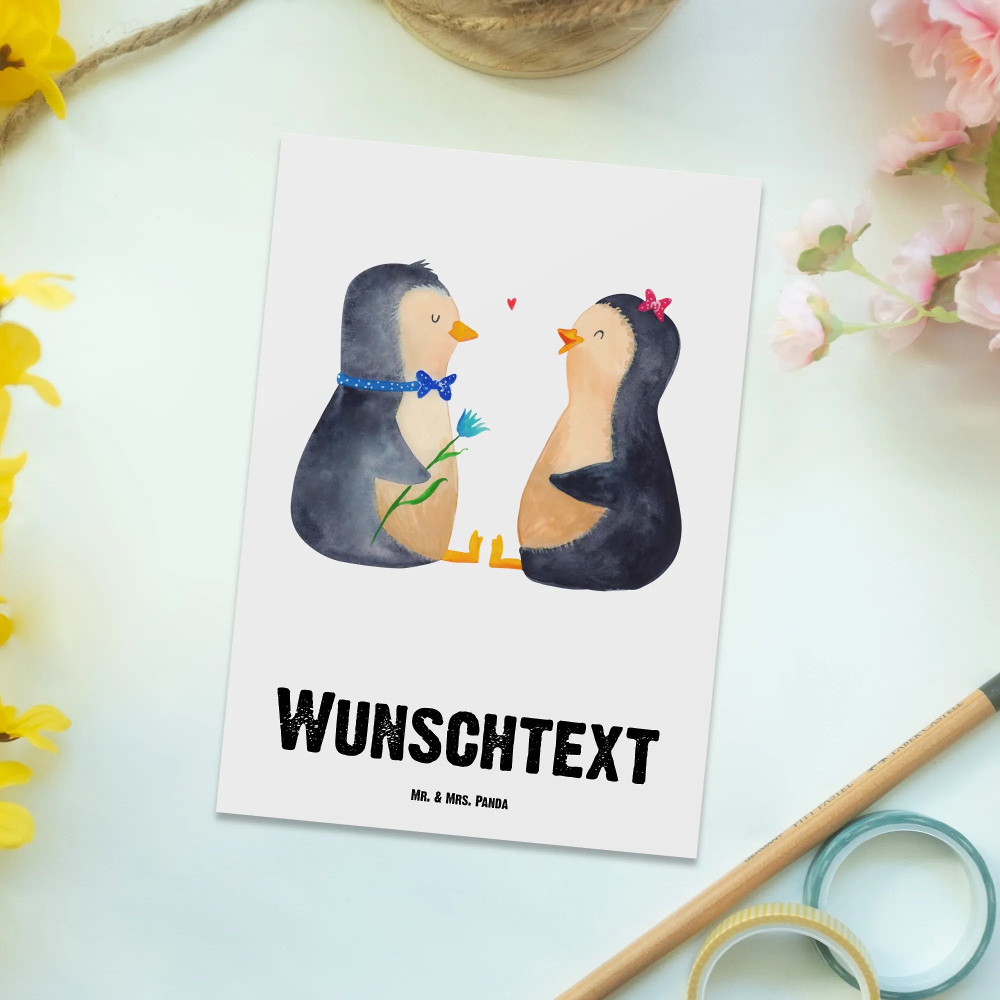 Personalisierte Postkarte Pinguin Pärchen Geschenkkarte mit Wunschtext, Geschenkkarte mit Namen, Karte mit Namen, Karte mit Wunschtext, Einladung mit Namen, Postkarte mit Namen, Ansichtskarte mit Namen, Einladung mit Wunschtext, Postkarte mit Wunschtext, Ansichtskarte mit Wunschtext, Postkarte personalisierbar, Postkarte bedrucken, Grußkarte mit Namen, Grußkarte mit Wunschtext, Pinguin, Liebesgeschenk, Traumpaar, Hochzeit, Verlobung, Jahrestag, große Liebe, Hochzeitstag, Liebe, Liebespaar, Pinguine, Liebesbeweis, Hochzeitsgeschenk
