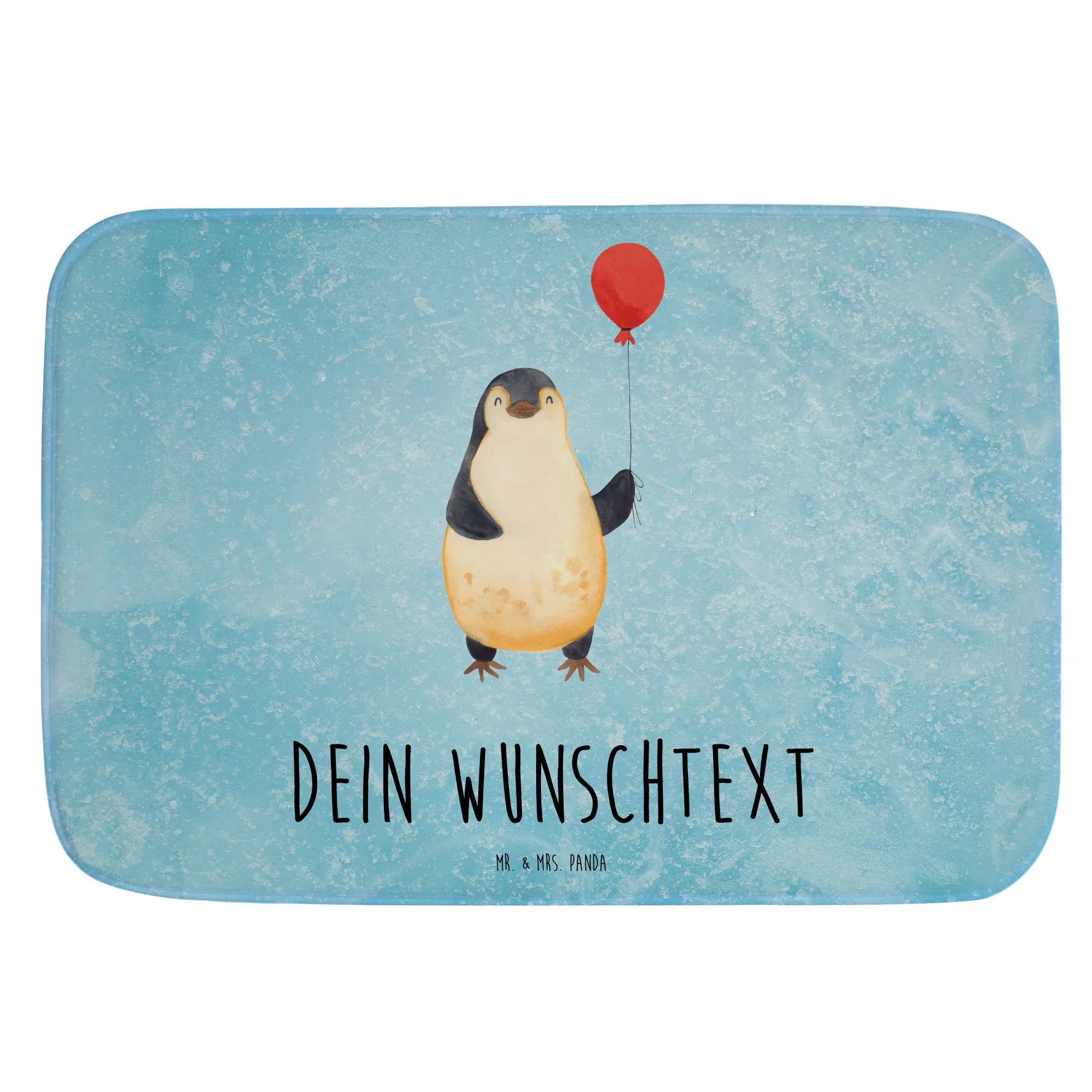 Entdecke die perfekte persönliche Note für dein Badezimmer mit unserem wunderschönen personalisierten Badvorleger mit dem niedlichen Motiv des Pinguins mit Luftballon aus der Pinguin-Kollektion von Mr. & Mrs. Panda!