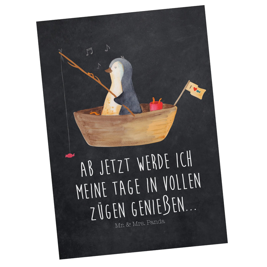 Postkarte Pinguin Angelboot - mit Spruch - Kreidetafel