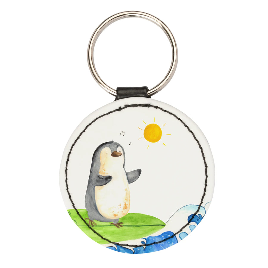 Rund Schlüsselanhänger Pinguin Surfer - Weiß