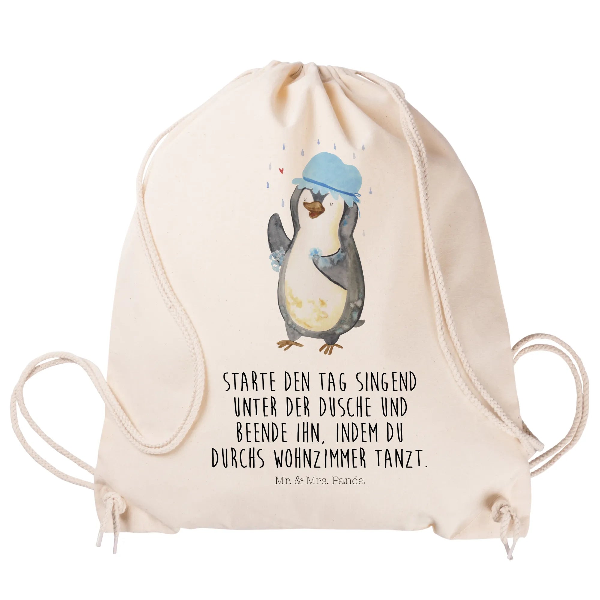 Inspirierendes Pinguin Dusche Motiv von Mr. & Mrs. Panda - Täglicher Glückbringer für dein Zuhause