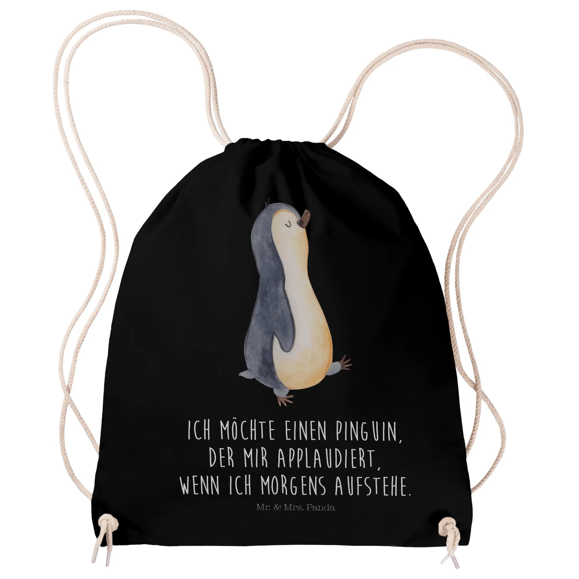 Mit dem witzigen Slogan „Ich möchte einen Pinguin, der mir applaudiert, wenn ich morgens aufstehe.“ verleiht der Sportbeutel jedem Morgen einen fröhlichen Start.