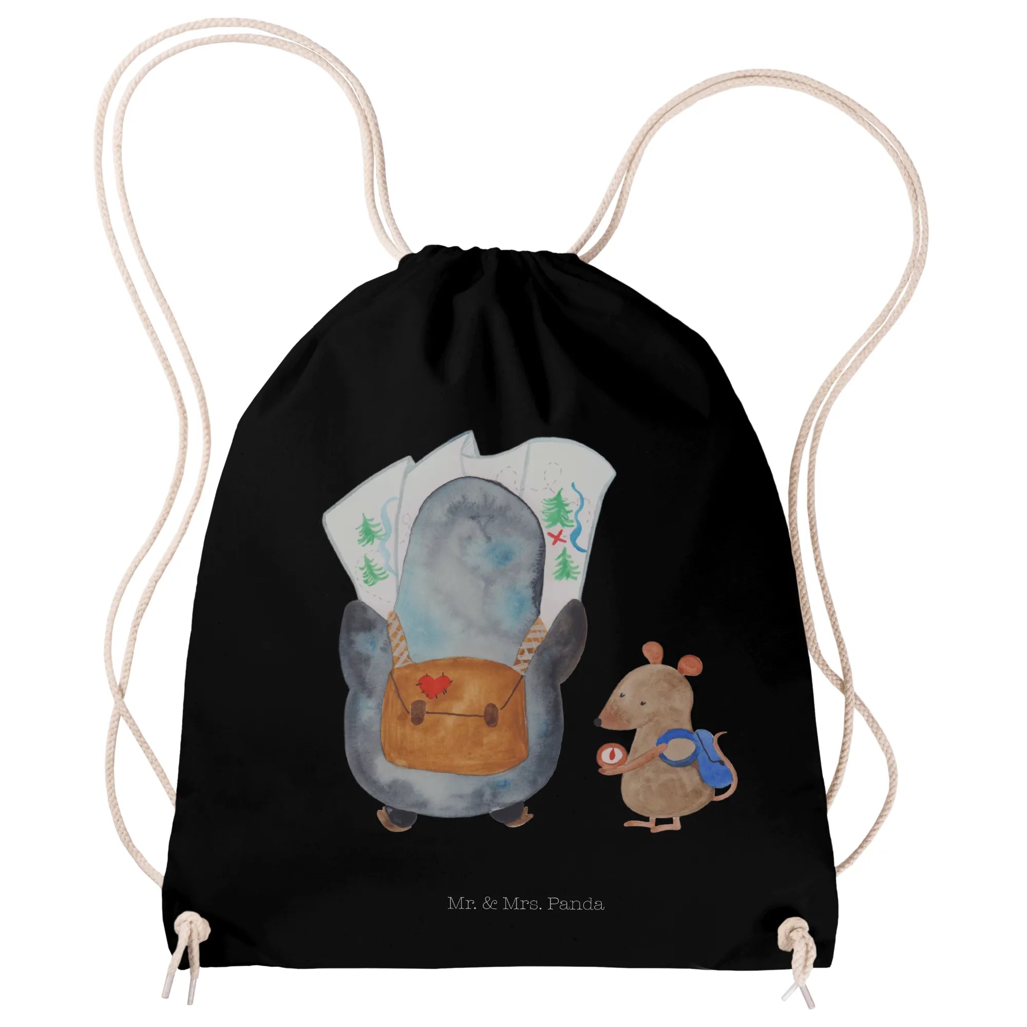 Turnbeutel Pinguin & Maus Wanderer - ohne Spruch - Schwarz