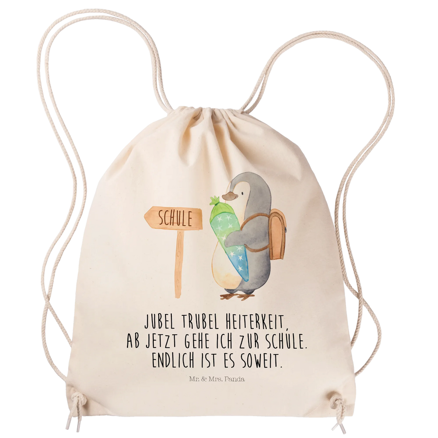 Der Sportbeutel Pinguin Schultüte von Mr. & Mrs. Panda ist das perfekte Geschenk für Schulanfänger und all die kleinen Abenteurer, die sich auf den ersten Schultag freuen!