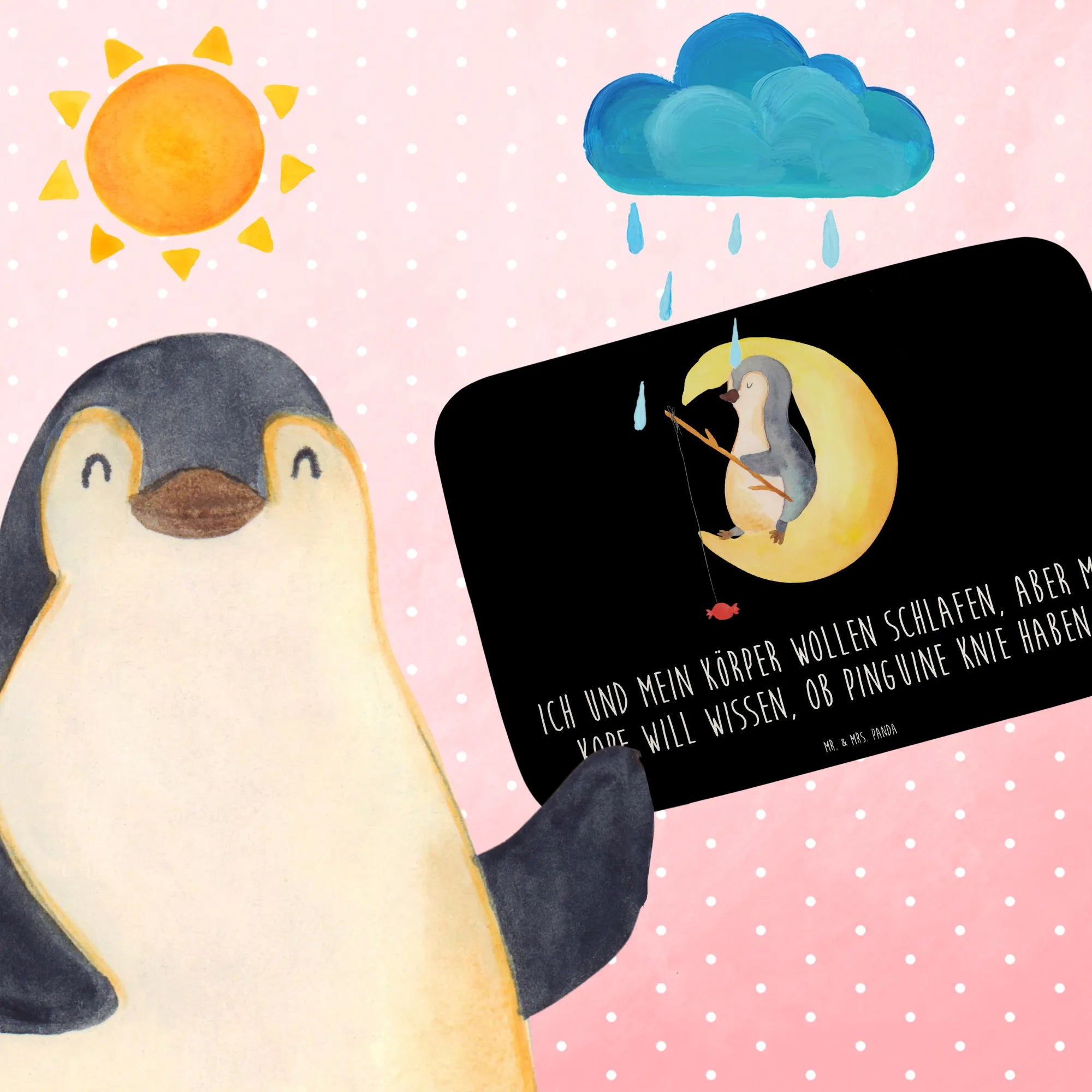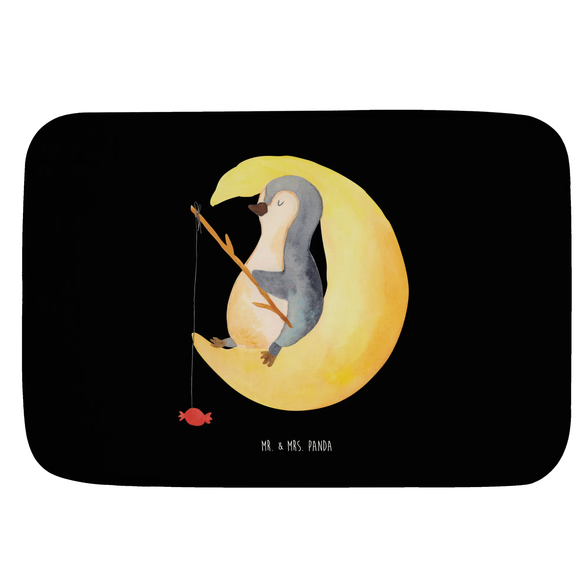 Entdecke den einzigartigen Badvorleger aus der Pinguin-Kollektion von Mr. & Mrs. Panda! Mit seinem bezaubernden Motiv eines süßen Pinguins, der auf einer Mondsichel sitzt und mit einer Angel nach süßen Bonbons angelt, bringt er ein fröhliches Flair in jedes Badezimmer. Der Slogan 'Ich und mein Körper wollen schlafen, aber mein Kopf will wissen, ob Pinguine Knie haben...' sorgt für ein Schmunzeln bei jedem Besuch.