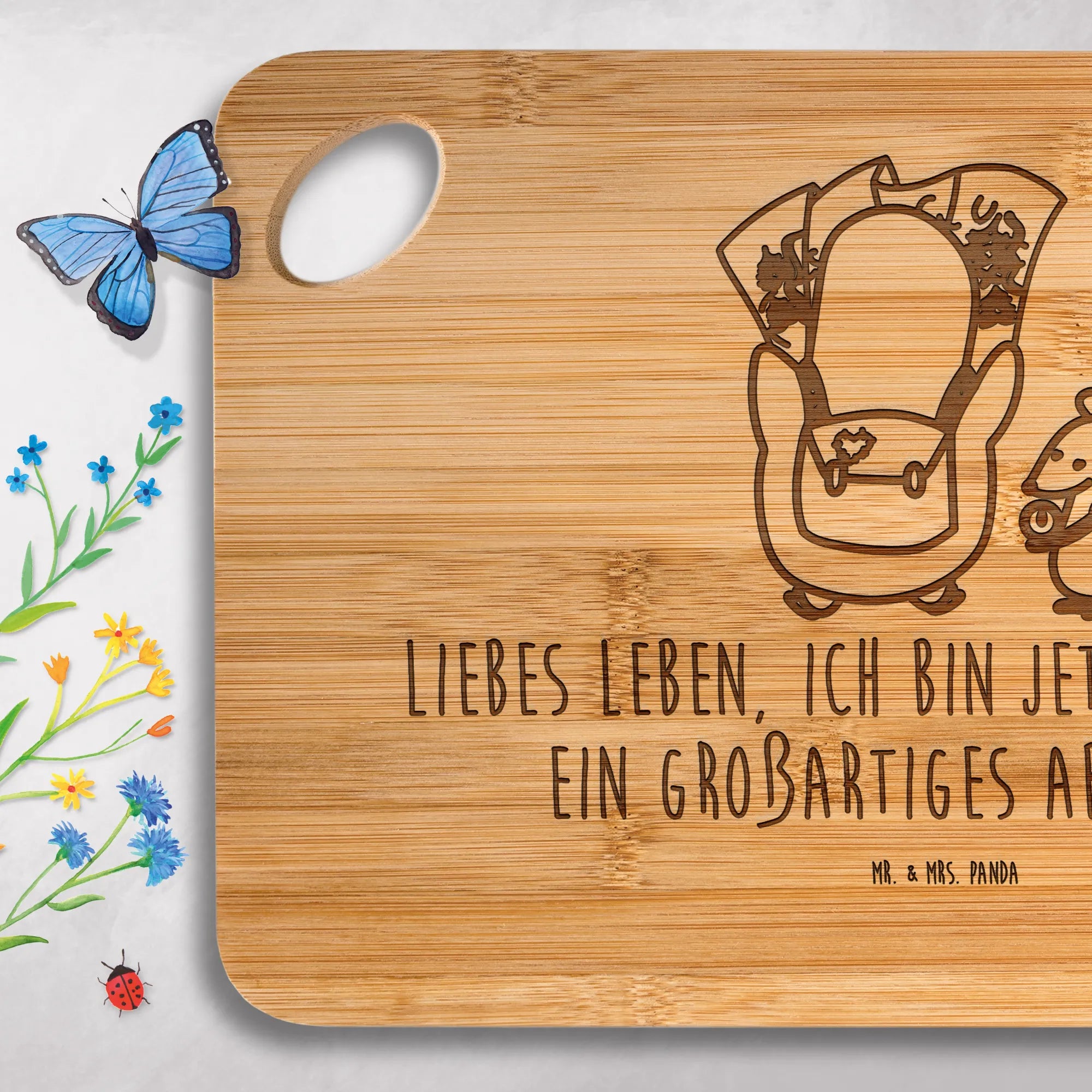 Entdecke das praktische Hackbrett von Mr. & Mrs. Panda – robust, hübsch graviert und sofort einsatzbereit in deiner Küche!