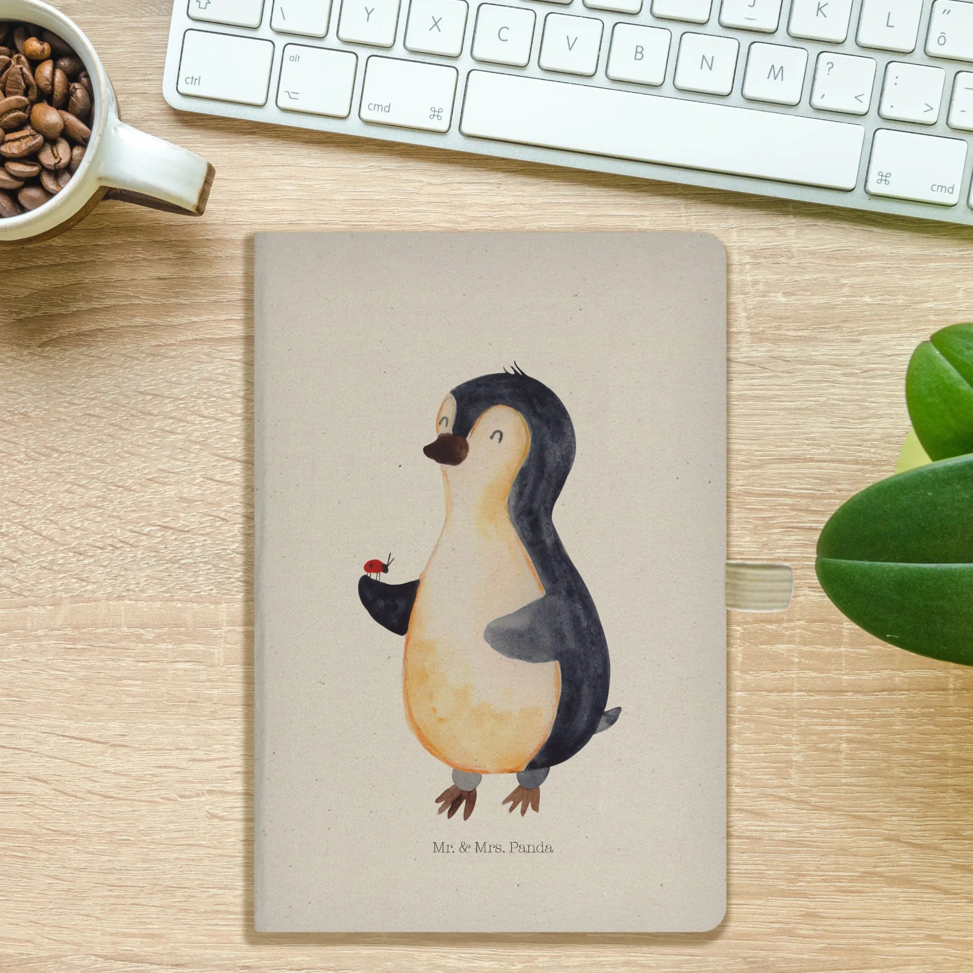 Entdecke das bezaubernde DIN A6 Baumwoll Notizbuch mit dem liebevollen Motiv des Pinguins mit Marienkäfer von Mr. & Mrs. Panda! Dieses Notizbuch ist nicht nur stylisch, sondern auch unglaublich funktional. Egal, ob du deine Gedanken, Ideen, Skizzen oder zauberhafte Erinnerungen festhalten möchtest, dieses Notizbuch ist der perfekte Begleiter.
