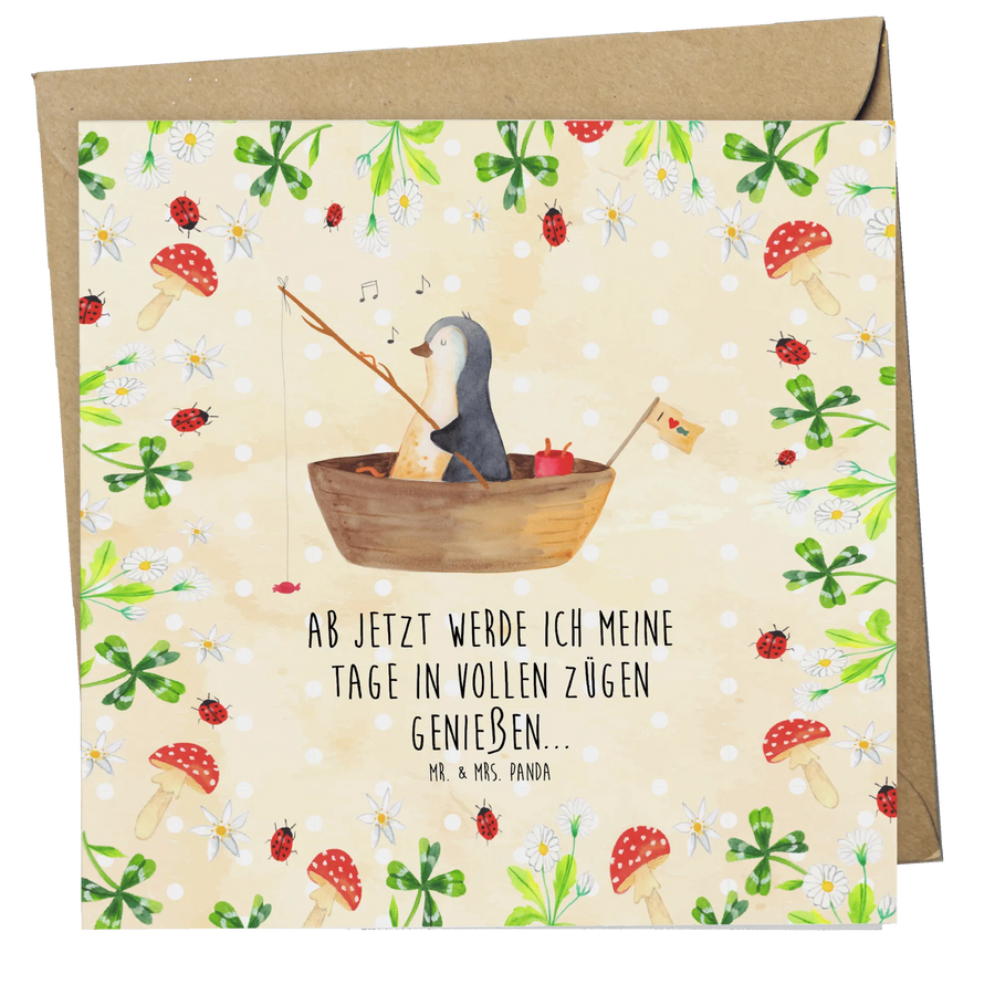 Die Deluxe Karte mit dem süßen Pinguin-Motiv auf dem Angelboot von Mr. & Mrs. Panda ist das perfekte Geschenk für viele Anlässe!