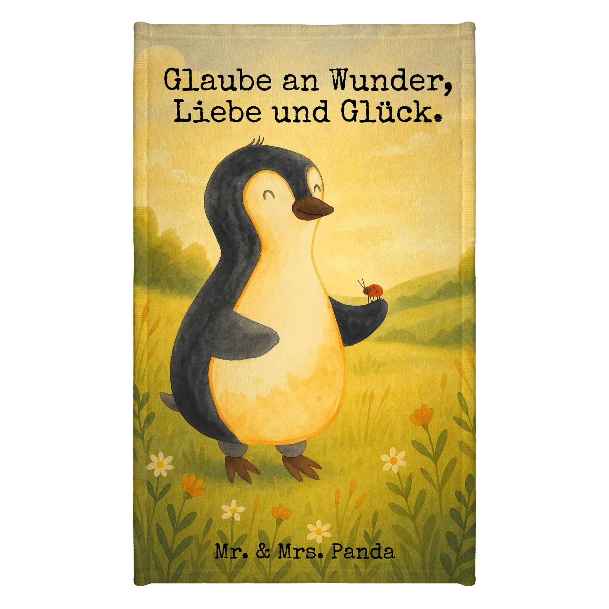 Gästehandtuch Pinguin Marienkäfer Design - mit Spruch
