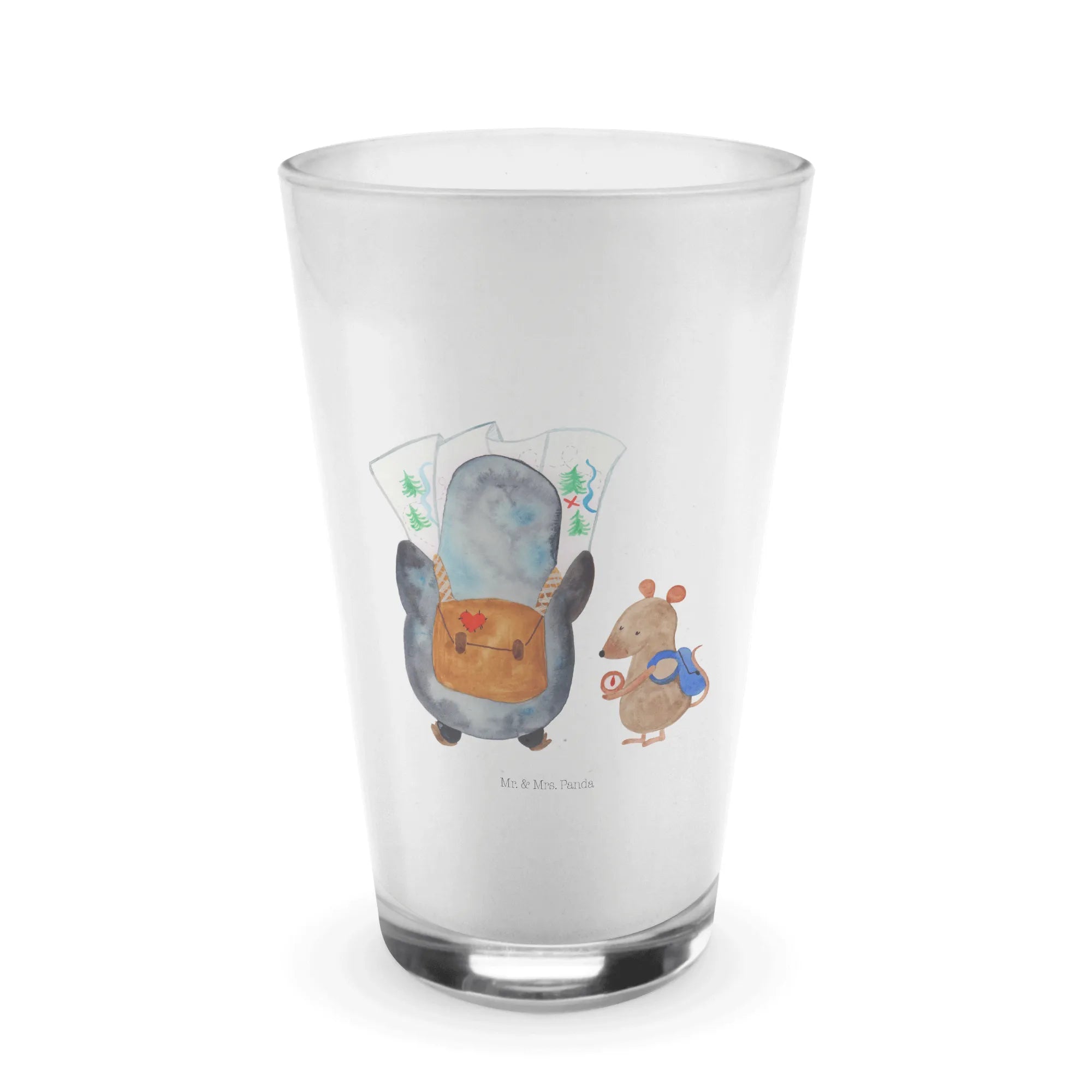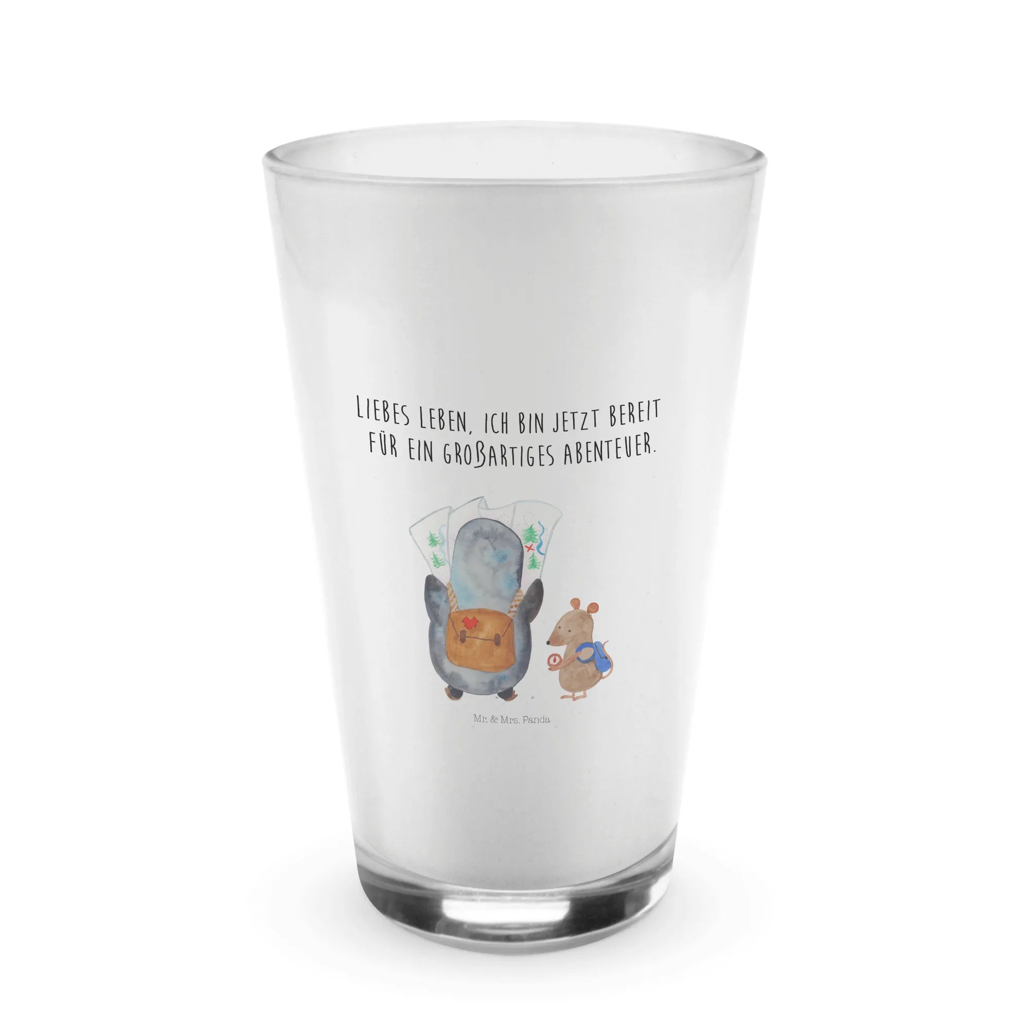 Entdecke das bezaubernde Cappuccino Glas mit dem einzigartigen Motiv des Pinguins und der Maus aus der Pinguin-Kollektion von Mr. & Mrs. Panda! Dieses edle und hochwertige Glas ist nicht nur ein praktisches Accessoire für deinen Kaffee, sondern es erzählt auch eine Geschichte von Abenteuerlust und Entdeckung. Der liebevoll handgezeichnete Pinguin blickt neugierig auf eine detailreiche Landkarte, während die schlaue Maus den Kompass prüft. Zusammen sind sie bereit für aufregende Reisen und großartige Erlebnisse!