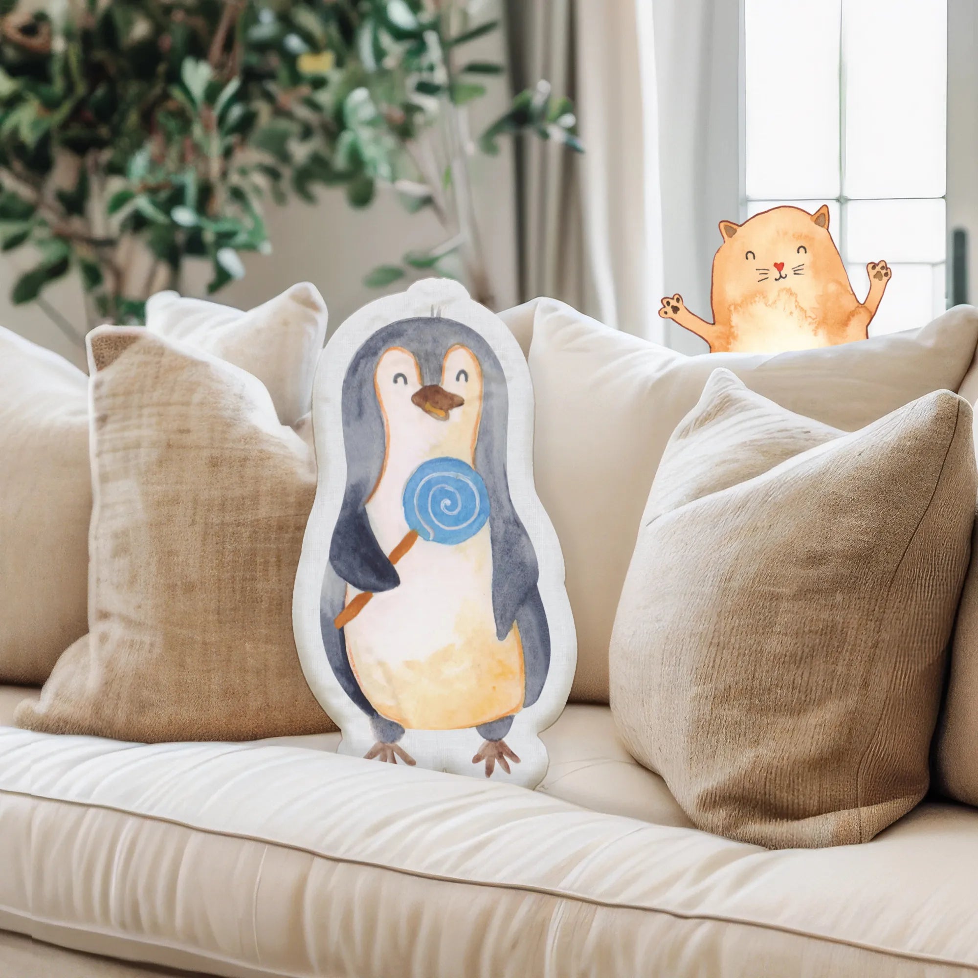 Entdecke das zauberhafte Kissen Kuscheltier mit dem süßen Pinguin Lolli-Motiv aus der Pinguin-Kollektion von Mr. & Mrs. Panda! Dieses eine ganz besondere Kissen Kuscheltier vereint die besten Eigenschaften eines knuffigen Plüschtiers mit dem Charme eines dekorativen Kissens. Du wirst sofort in das niedliche Gesicht des Pinguin Lollis verzaubert sein. In seiner flauschigen Hand hält er stolz seinen Lieblingslutscher. Einfach zum Schmelzen, oder?