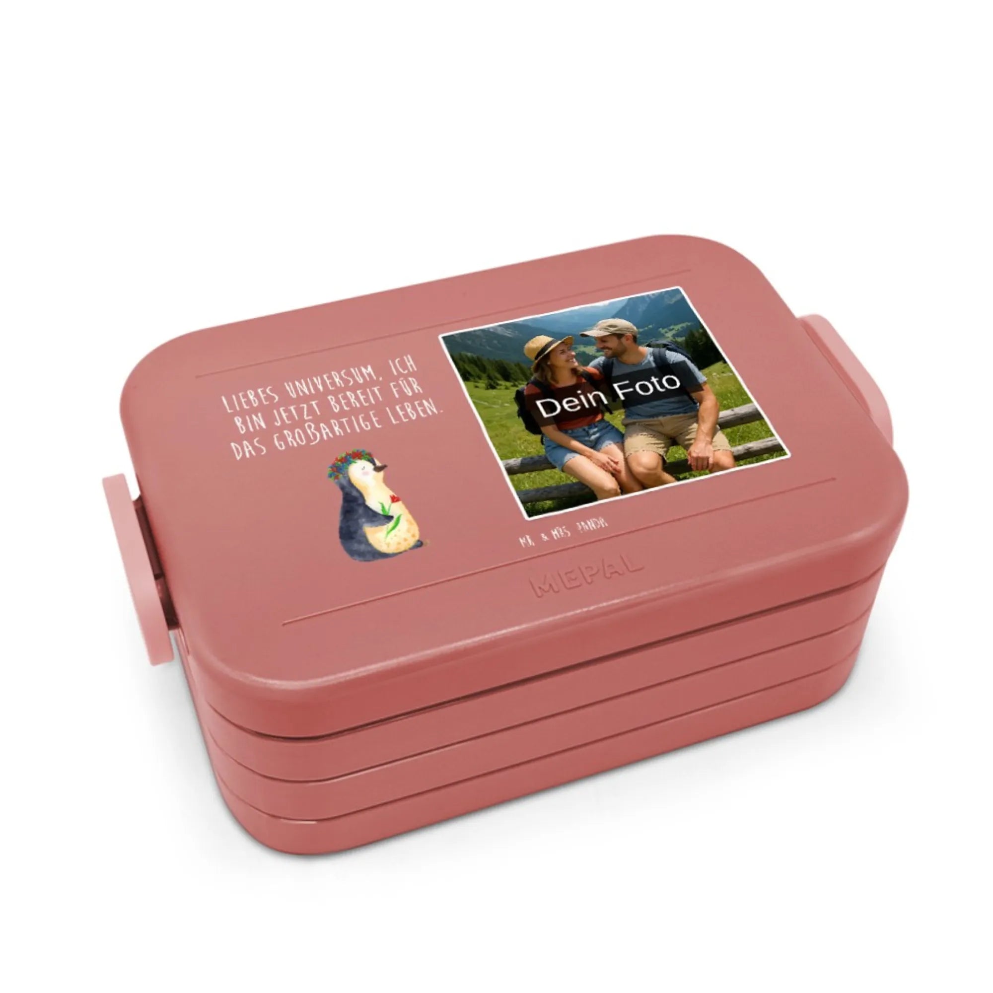 MEPAL Foto Bentobox Pinguin Blumen Foto Lunchbox, Foto Bentobox, Foto Brotdose, Pinguin, Wünsche, Geschenkidee, Blumenkranz, Liebeskummer, Lebensziele, Universum, Motivation, Pinguine, Ziele, Leben, Lebenslust