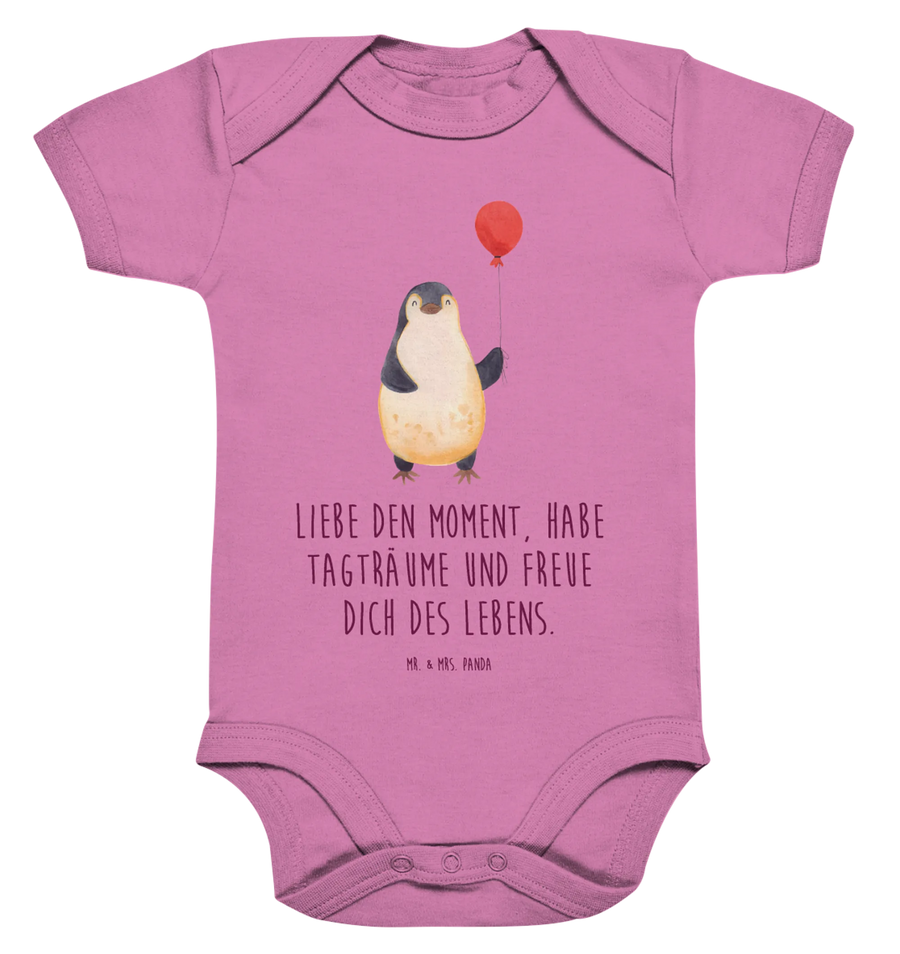 Organic Baby Body Pinguin Luftballon - 12. - 18. Monat - mit Spruch - Bubble Gum Pink