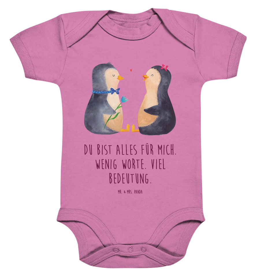 Entdecke den bezaubernden Organic Baby Body mit dem Pinguin Pärchen von Mr. & Mrs. Panda! Dieser Strampler ist nicht nur ein süßes Kleidungsstück, sondern auch ein wunderschönes Geschenk für die Kleinsten, die sich in der Welt der Liebe und Zuneigung wiederfinden. Das liebevoll gestaltete Motiv zeigt zwei süße Pinguine, die sich begeistert anschauen – ein toller Ausdruck von Freundschaft und Verbundenheit. Mit dem Slogan 'Du bist alles für mich. Wenig Worte. Viel Bedeutung.' sprichst du nicht nur dein Herz, sondern auch das deiner Liebsten an.