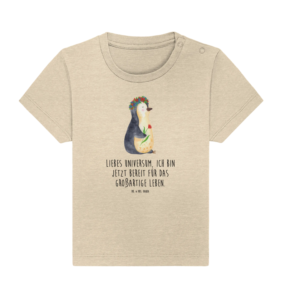 Entdecke unser zauberhaftes organic Baby Shirt mit dem süßen Motiv 'Pinguin Blumenkranz' aus der exklusiven Pinguin-Kollektion von Mr. & Mrs. Panda. Dieses Shirt ist nicht nur ein echter Hingucker, sondern auch ein tolles Geschenk zur Geburt, zum ersten Geburtstag oder einfach für die Kleinen, die die Welt erkunden wollen.