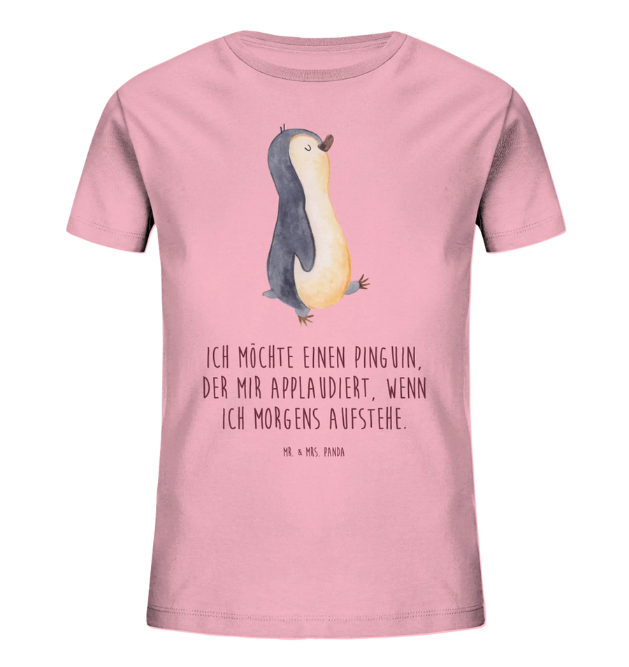 Mit dem süßen Motiv eines marschierenden Pinguins und dem lustigen Slogan "Ich möchte einen Pinguin, der mir applaudiert, wenn ich morgens aufstehe" ist es nicht nur ein echter Hingucker, sondern steigert auch die Laune beim morgendlichen Aufstehen. In sanftem Cotton Pink lässt es sich perfekt kombinieren und eignet sich für Mädchen und Jungen gleichermaßen. Eigentlich kann man kaum widerstehen, wenn der eigene Sprössling in diesem tollen Shirt auftaucht!
