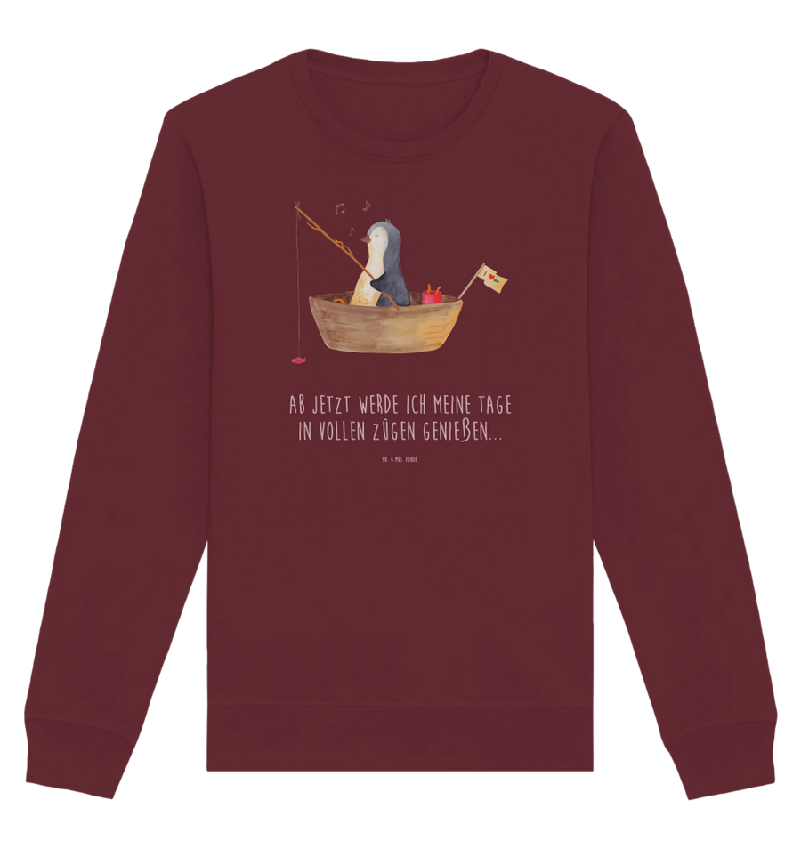 Organic Pullover Pinguin Angelboot - Größe XS - mit Spruch - Burgundy