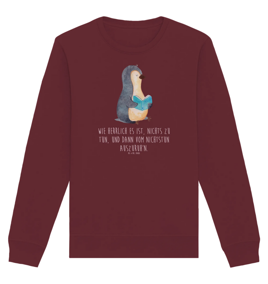 Organic Pullover Pinguin Buch - Größe L - mit Spruch - Burgundy