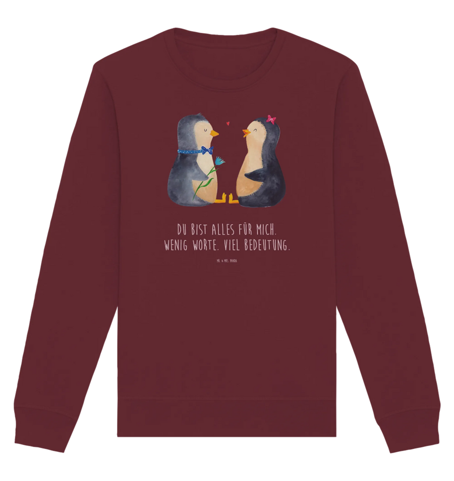 Organic Pullover Pinguin Pärchen - Größe XS - mit Spruch - Burgundy