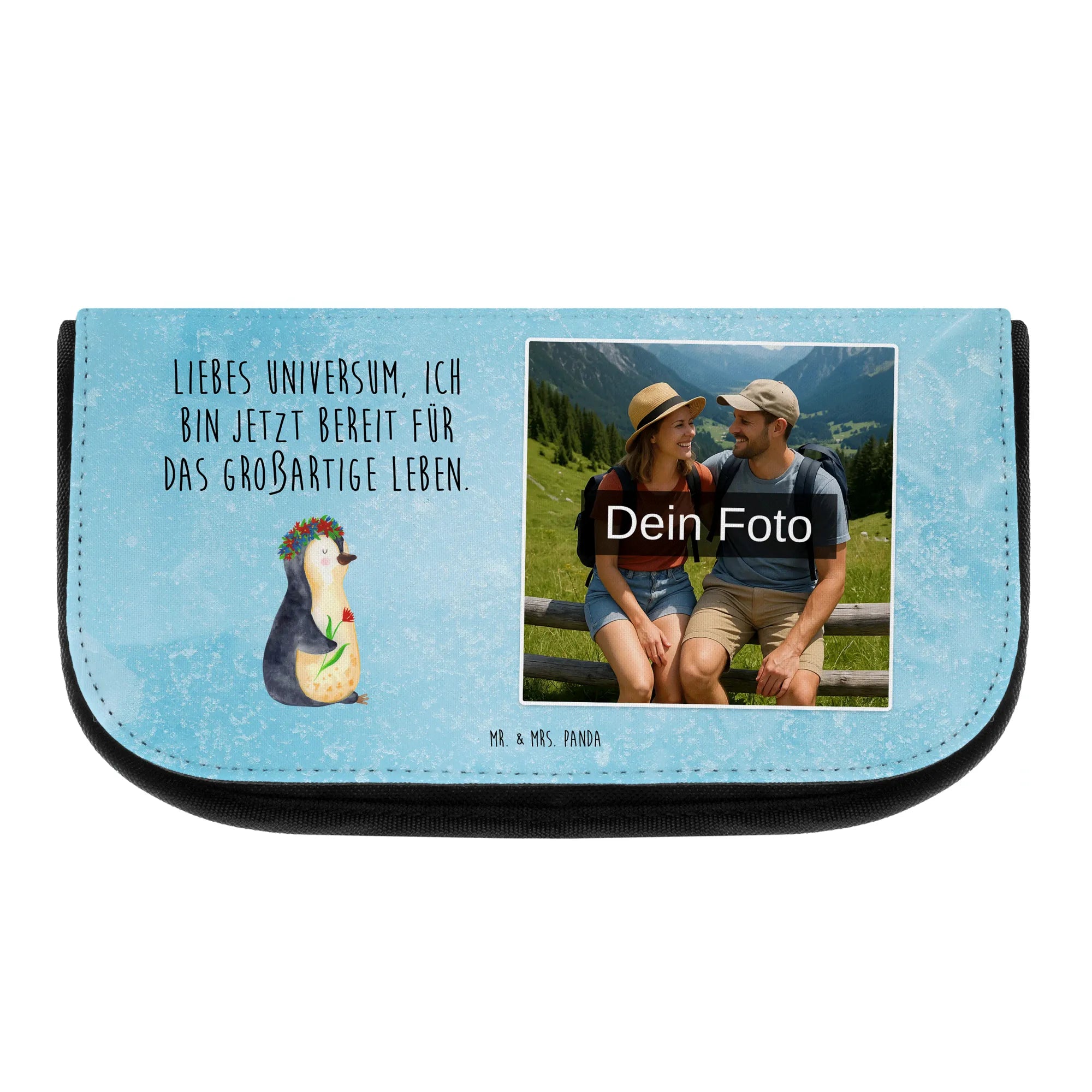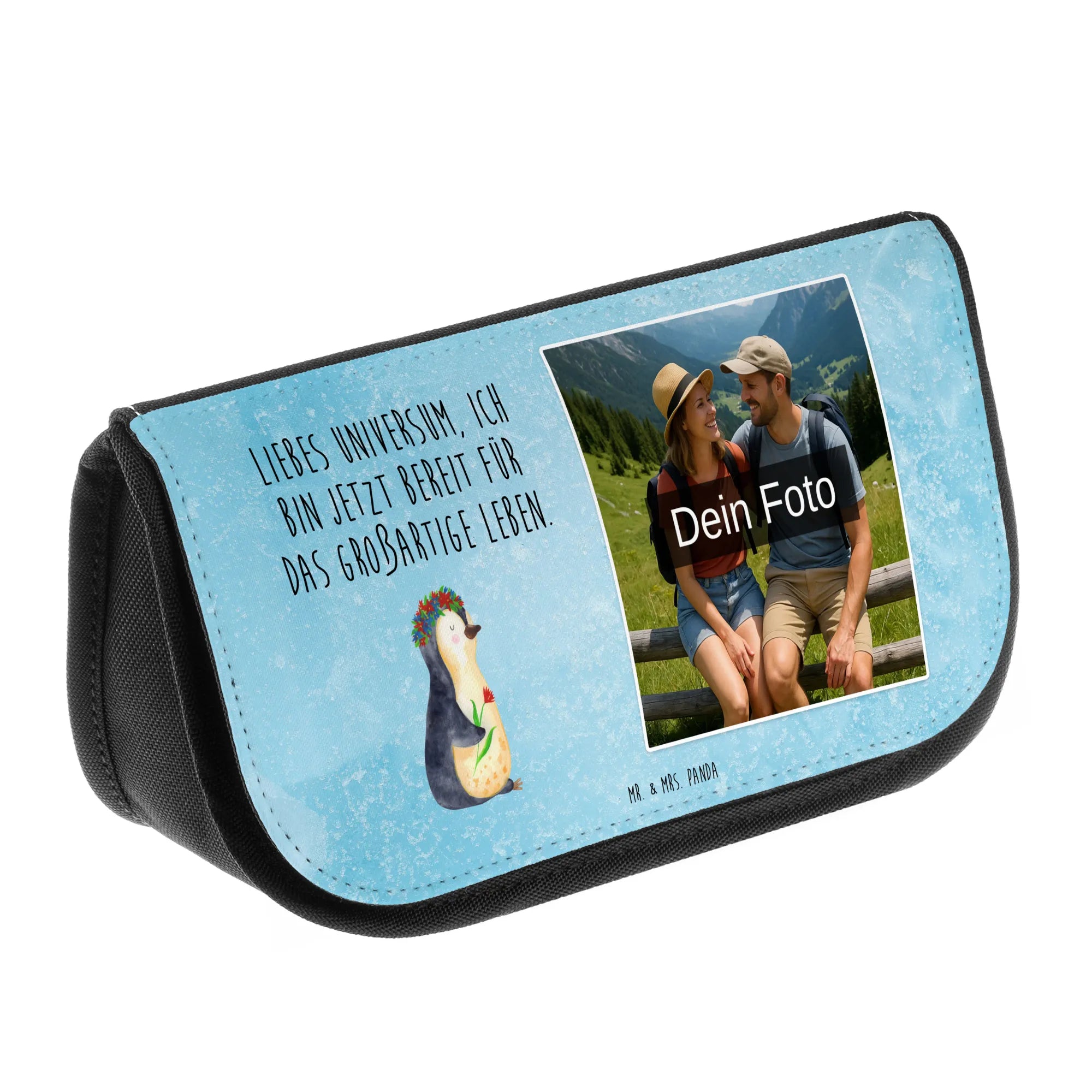 Personalisierte Foto Kosmetiktasche Pinguin Blumen