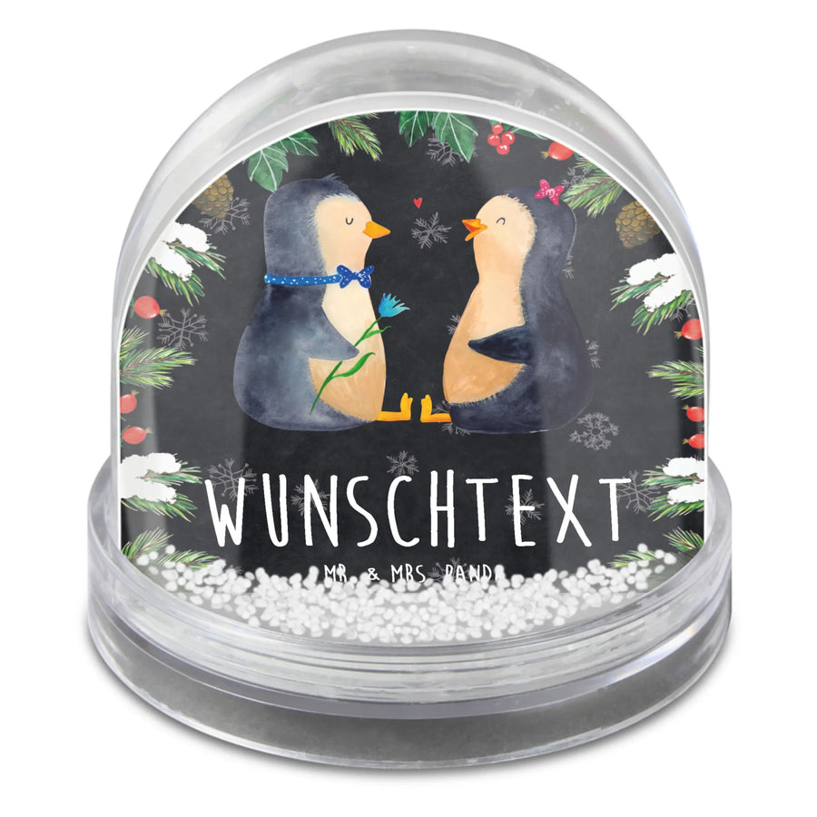 Personalisierte Schneekugel Pinguin Pärchen - Kreidetafel
