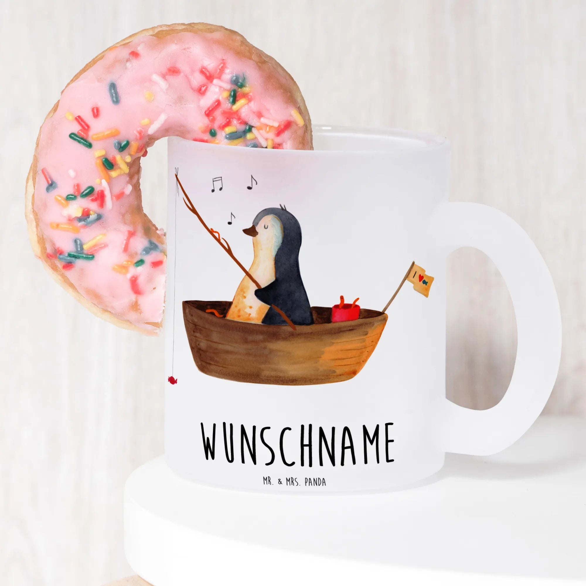 Die personalisierte Teetasse Pinguin Angelboot von Mr. & Mrs. Panda ist das perfekte Geschenk für alle Pinguinliebhaber! Egal, ob für einen Neuanfang nach einer Trennung oder einfach zur Aufmunterung, diese Tasse bringt Freude in jeden Tag. Mit einem liebevoll gestalteten Pinguin, der auf einem kleinen Angelboot sitzt und mit Bonbons angelt, zaubert sie jedem ein Lächeln ins Gesicht.