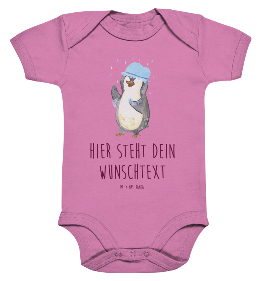 Personalisierter Babybody „Pinguin duscht“ aus der Pinguin - Kollektion von Mr. & Mrs. Panda