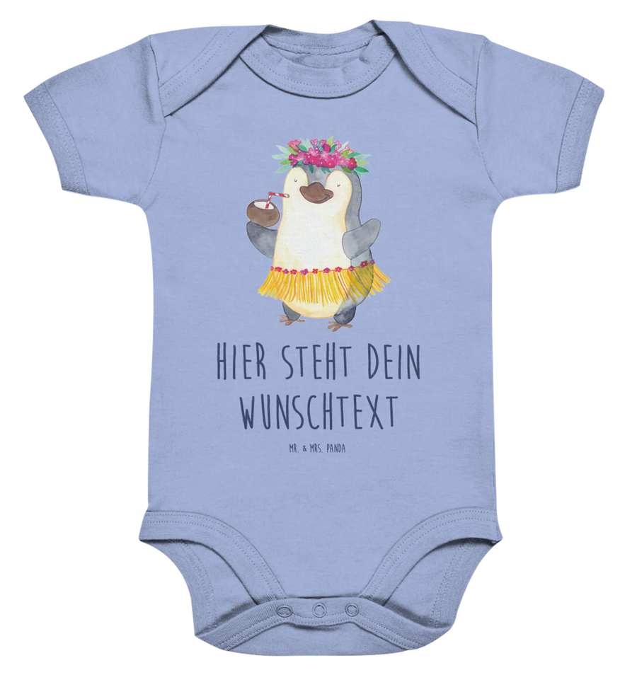 Das Design zeigt einen süßen Pinguin in einem bunten Röckchen, der mit einer Kokosnuss in der Hand fröhlich in der Sonne tanzt. Ideal für den Sommer oder für besondere Anlässe, lässt sich dieser Body wunderbar kombinieren und macht jedes Outfit komplett. Der personalisierte Aufdruck mit dem Namen deines kleinen Lieblings verleiht dem Ganzen eine besondere Note, die alle Blicke auf sich zieht.