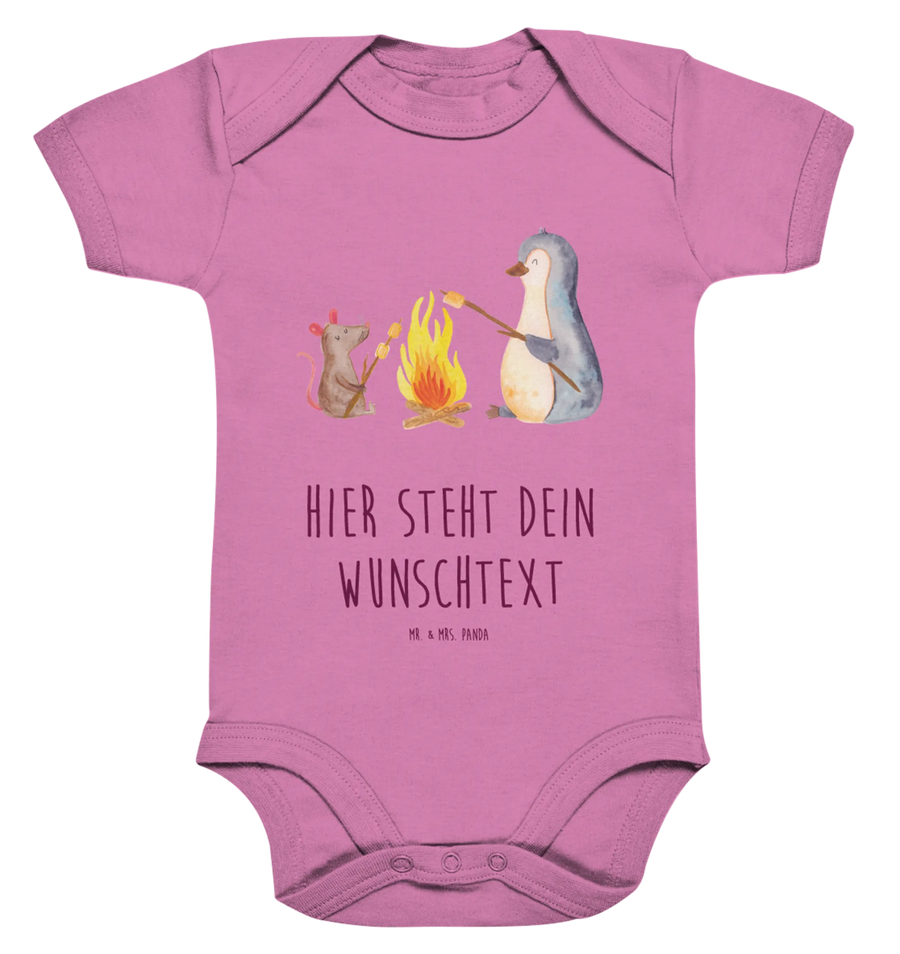 Der personalisierte Baby Body mit dem süßen Pinguin Lagerfeuer Motiv aus der Pinguin-Kollektion von Mr. & Mrs. Panda ist das perfekte Geschenk für kleine Abenteurer und ihre Eltern! Mit einer liebevollen Illustration eines Pinguins und einer Maus, die fröhlich am Lagerfeuer Marshmallows grillen, ist dieser Body nicht nur ein echter Hingucker, sondern auch ein Ausdruck von Freude und Liebe.