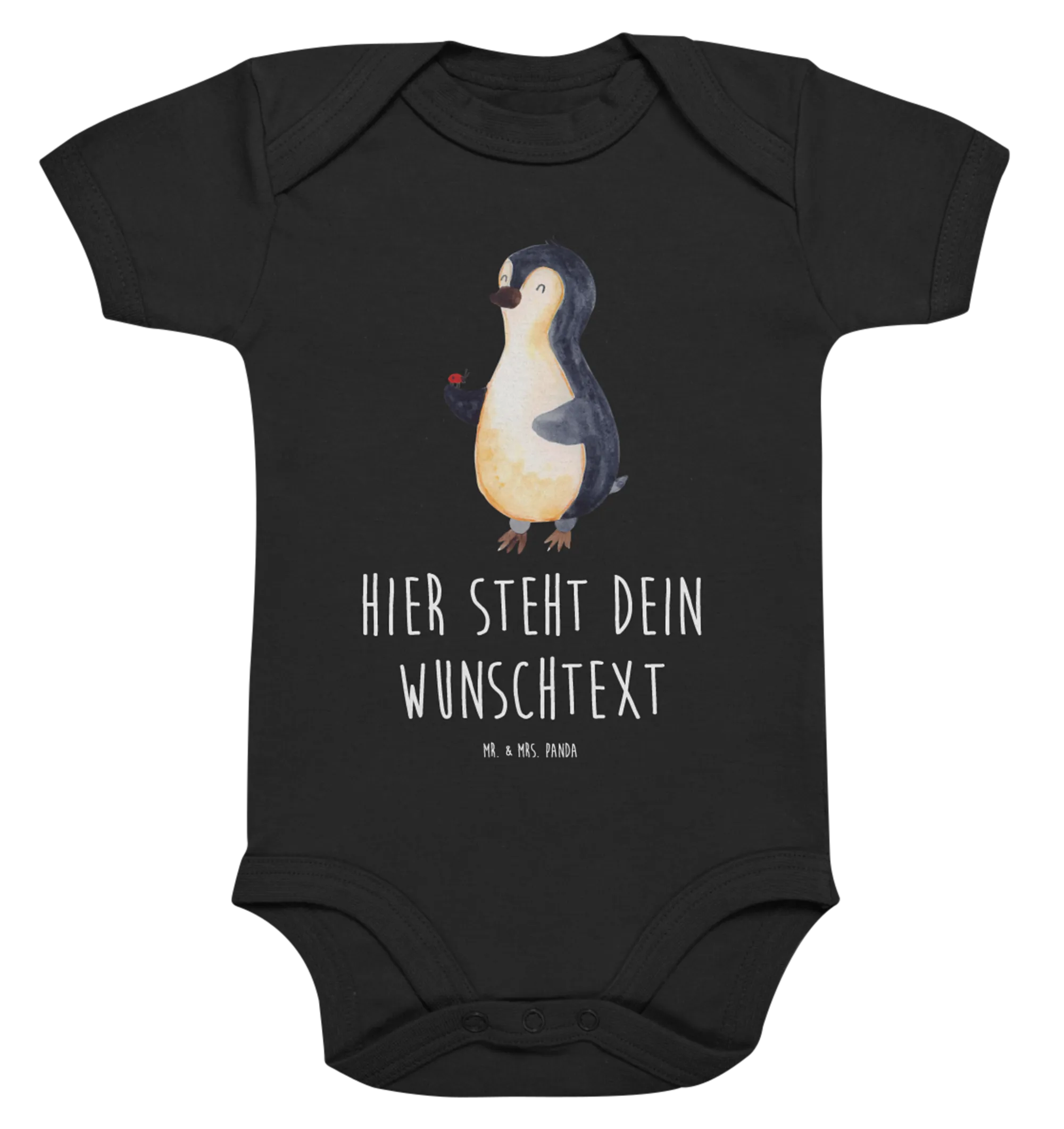 Willkommen in der zauberhaften Welt von Mr. & Mrs. Panda! Der personalisierten Baby Body mit dem süßen Pinguin Marienkäfer Motiv ist mehr als nur ein Kleidungsstück – er ist ein kleines Stück Lebensfreude für dein Baby!