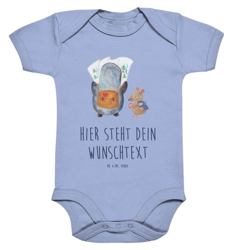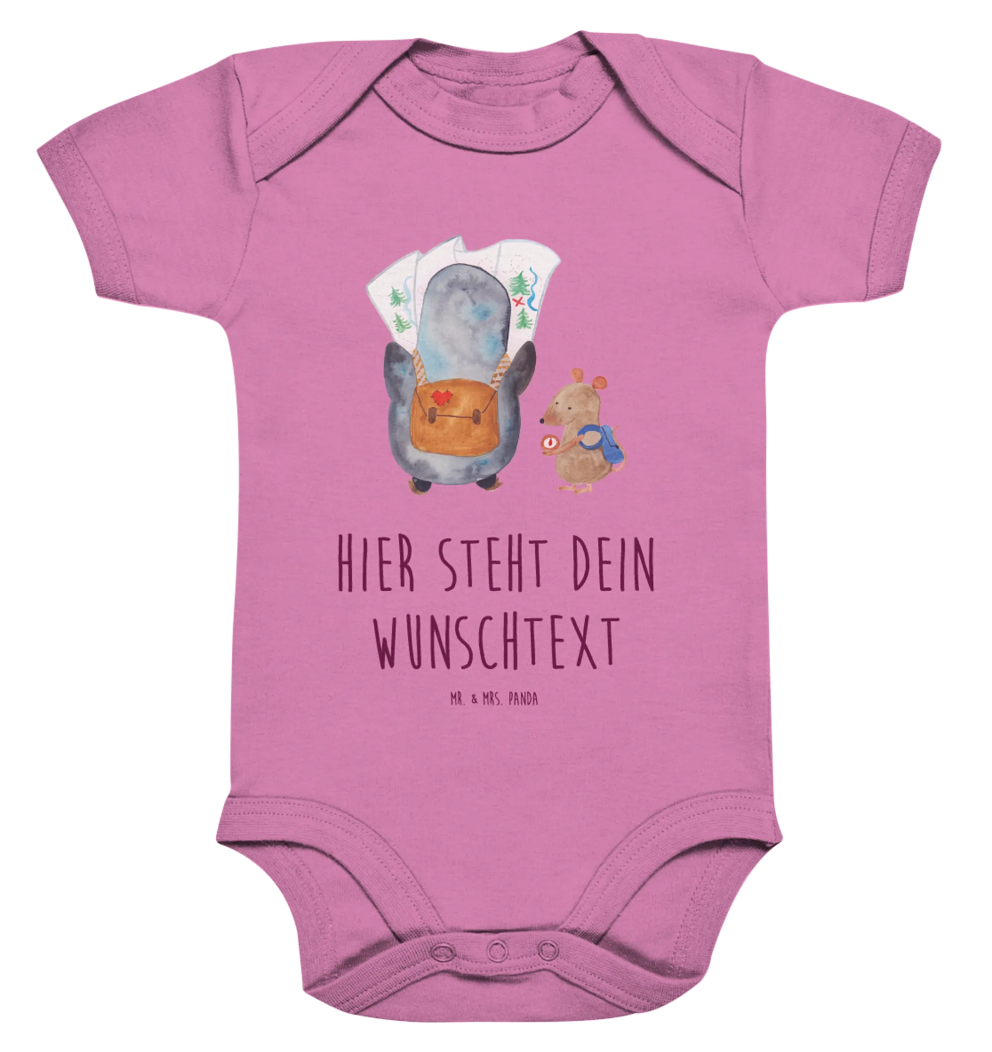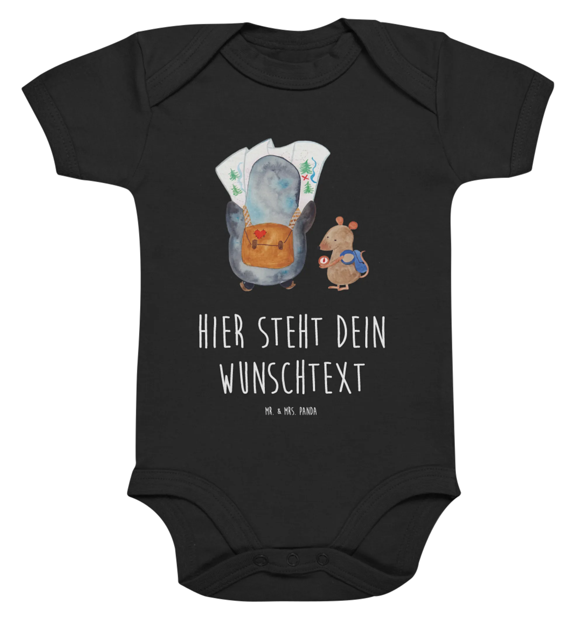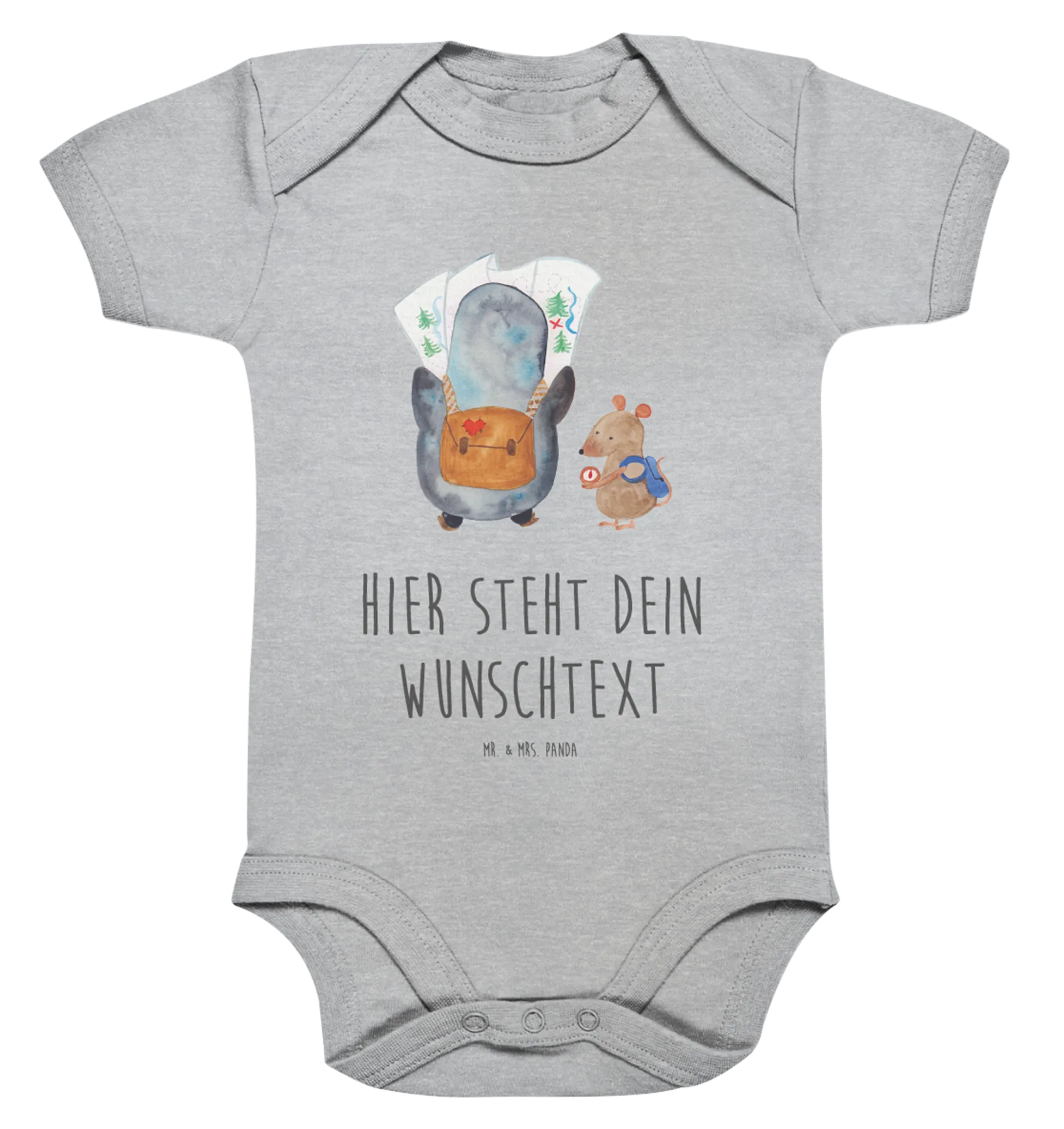 Der personalisierte Baby Body mit dem bezaubernden Motiv "Pinguin & Maus Wanderer" aus der Pinguin-Kollektion von Mr. & Mrs. Panda ist das perfekte Geschenk für kleine Abenteurer und ihre Eltern. Mit diesem einzigartigen Baby Body kannst Du nicht nur den süßen Pinguin, der neugierig auf die Landkarte schaut, und die wuselige Maus, die den Kompass prüft, bewundern, sondern ihm auch einen ganz persönlichen Touch verleihen.
