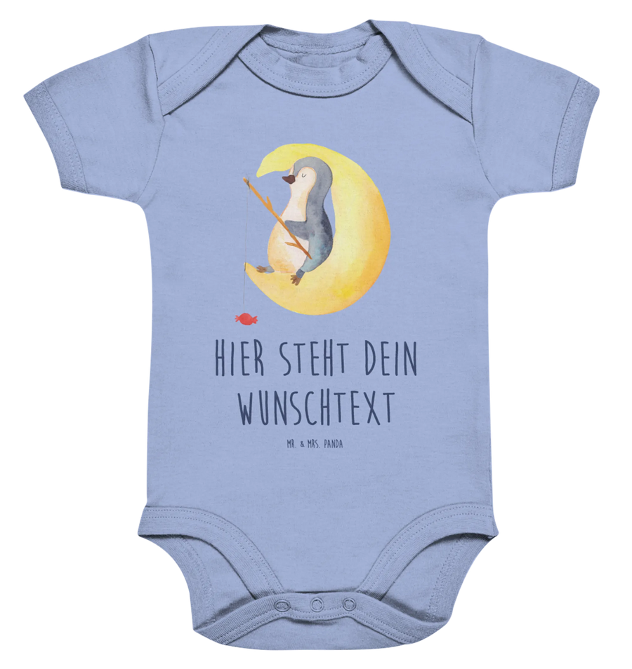 Der personalisierte Baby Body mit dem süßen Pinguin Mond Motiv ist das perfekte Geschenk für frischgebackene Eltern und ihre kleinen Herzensbrecher. Dieser Body ist nicht nur kuschelig und bequem, sondern auch ein echter Blickfang! Mit dem handgezeichneten Pinguin, der es sich auf einer Mondsichel gemütlich gemacht hat, und der kleinen Angel, die nach Sternen angelt, bringt er ein Lächeln auf jedes Gesicht.