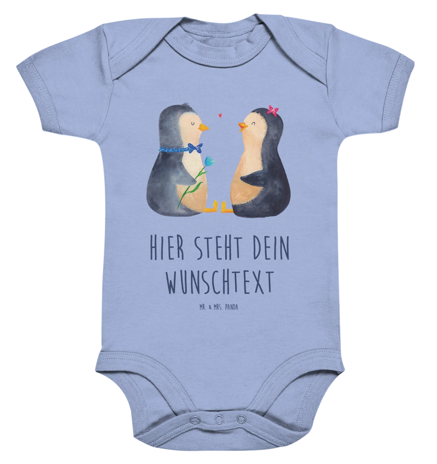 Perfekt für Jungen und Mädchen, macht dieser personalisierte Wickelbody jede Baby-Kleidung zum Unikat. Geschenkidee für Verliebte: Verschenke den Körper der großen Liebe, um diesen besonderen Moment zu feiern! Die Babykleidung der 'Pinguin Kollektion' von Mr. & Mrs. Panda lässt Herzen höher schlagen und bringt Freude in jeden Kleiderschrank.