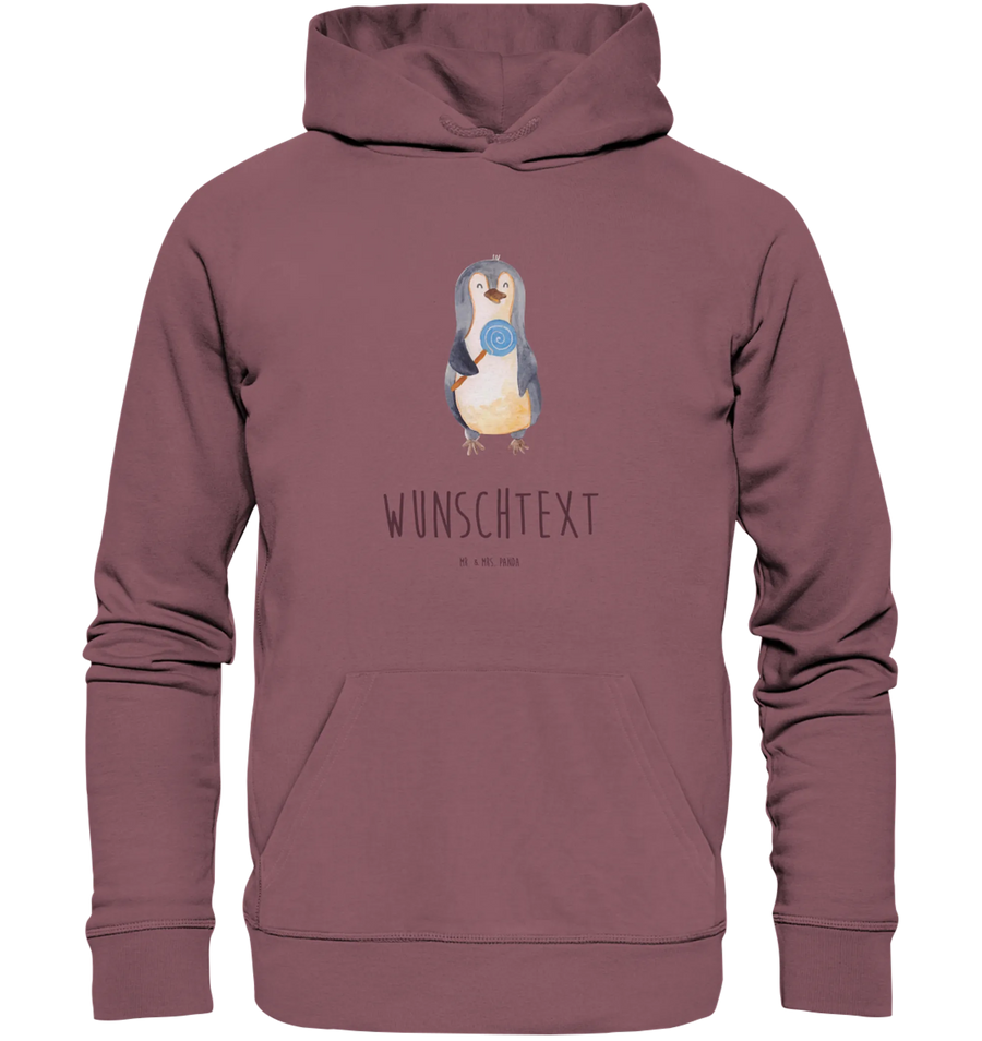 Der personalisierte Hoodie mit dem süßen Pinguin Lolli aus der Pinguin-Kollektion von Mr. & Mrs. Panda ist der perfekte Begleiter für alle, die sich ein Stück Unbeschwertheit und Freude in ihren Alltag holen möchten. Egal, ob für dich selbst oder als Geschenk für einen besonderen Menschen – dieser Hoodie bringt ein Lächeln auf jedes Gesicht! Der niedliche Pinguin mit seinem Lolli strahlt Kindlichkeit und Lebensfreude aus. Du kannst diesen Hoodie mit deinem Wunschnamen oder Wunschtext personalisieren, sodass er ganz individuell wird.