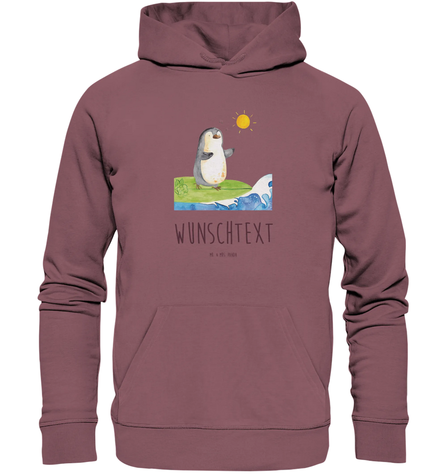 Der personalisierte Hoodie "Pinguin Surfer" von Mr. & Mrs. Panda ist mehr als nur ein Kapuzenpullover – er ist ein Statement für alle, die das Abenteuer lieben!