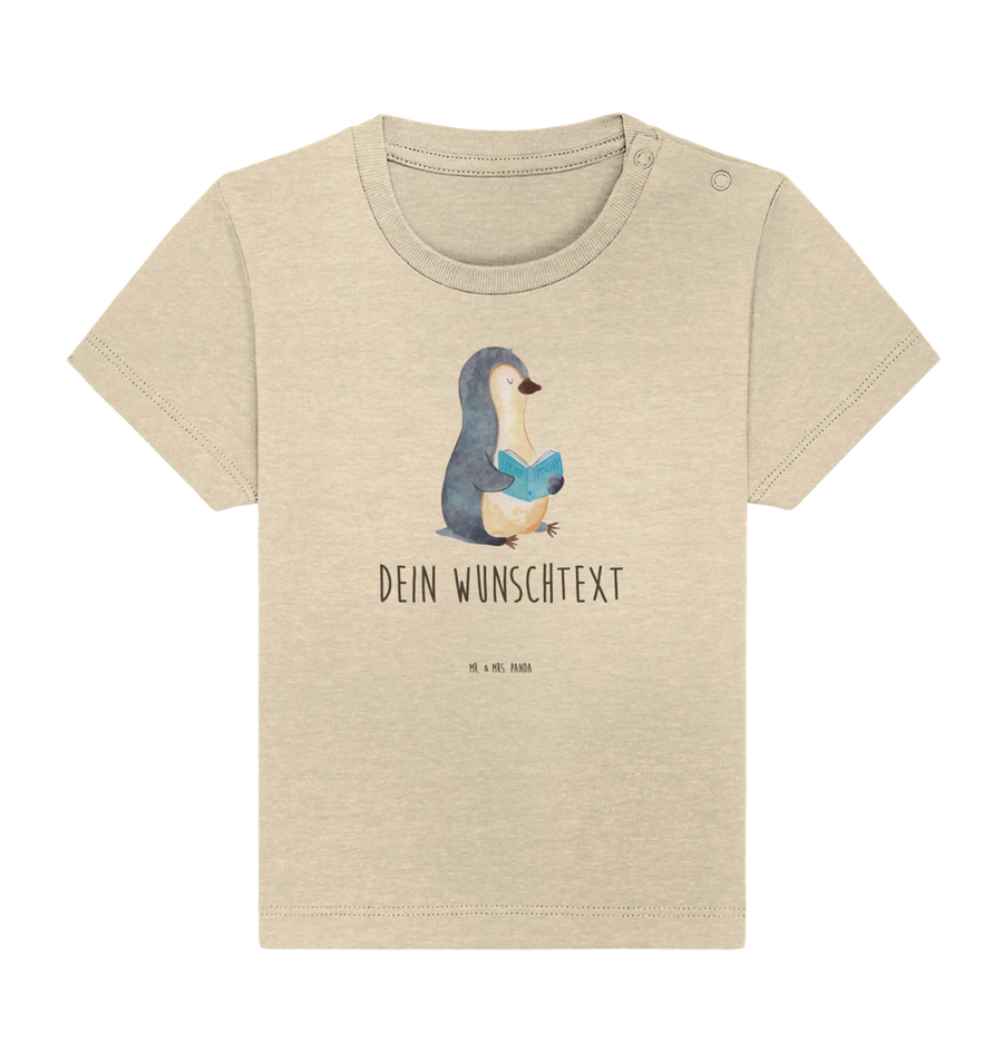 Das personalisierte Baby T-Shirt mit dem süßen Pinguin Buch-Motiv aus der Pinguin-Kollektion von Mr. & Mrs. Panda ist der perfekte Begleiter für kleine Bücherwürmer! Dieses liebevoll gestaltete Shirt aus 100% Öko-Baumwolle ist nicht nur nachhaltig, sondern auch unglaublich weich und bequem.