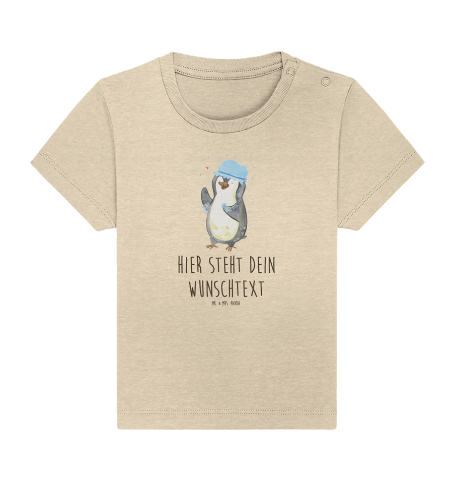Das personalisierte Baby T-Shirt "Pinguin duscht" aus der bezaubernden Pinguin-Kollektion ist nicht nur ein modisches Highlight, sondern auch das perfekte Geschenk für frischgebackene Eltern und deren kleinen Liebling. Wenn du auf der Suche nach einem einzigartigen und niedlichen Kleidungsstück für dein Baby bist, hast du es mit diesem T-Shirt gefunden. Der witzige Pinguin, der fröhlich unter einem Regenschauer steht und eine Duschhaube trägt, bringt jedem Kind ein Lächeln ins Gesicht und verbreitet gute Laune überall. Die liebevolle Handzeichnung von Mr. & Mrs. Panda sorgt dafür, dass dieses Shirt in jedem Kleiderschrank zum Hingucker wird.