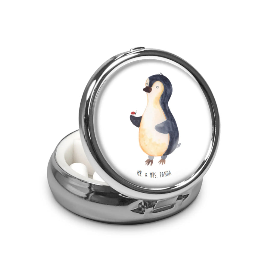 Mit der bezaubernden Pillendose von Mr. & Mrs. Panda bringst du Ordnung in dein Leben! Diese Dose mit einem Durchmesser von 50 mm und einer Höhe von 17 mm ist aus hochwertigem, verchromtem Metall gefertigt und wird schnell zu deinem praktischen Begleiter. Sie öffnet sich durch einen einfachen Knopfdruck und ermöglicht dir schnellen Zugriff auf deine Medikamente. Innen überzeugt sie mit einer cleveren 3er Aufteilung, damit du immer den Überblick behältst. Die schönen Motive und die brillanten Farben machen die Pillendose zum echten Highlight in deiner Tasche. Egal ob für den täglichen Gebrauch oder für unterwegs – diese Pillendose ist ideal für alle, die Wert auf Stil und Funktion legen. Sauber, praktisch und attraktiv – so macht die Medikamentenaufbewahrung Freude!