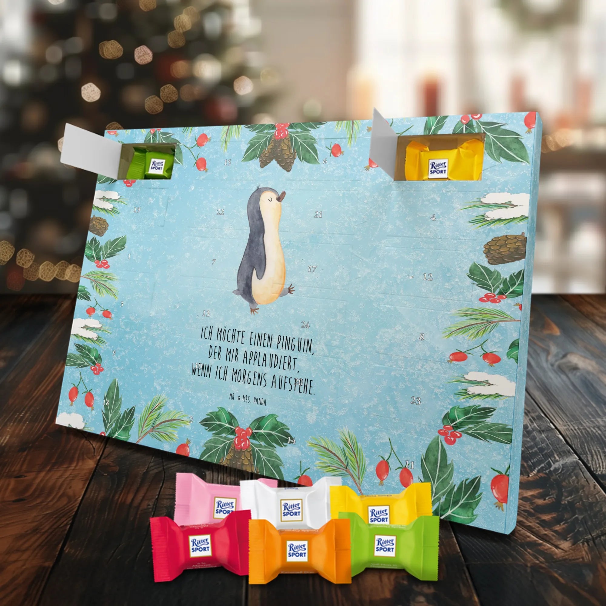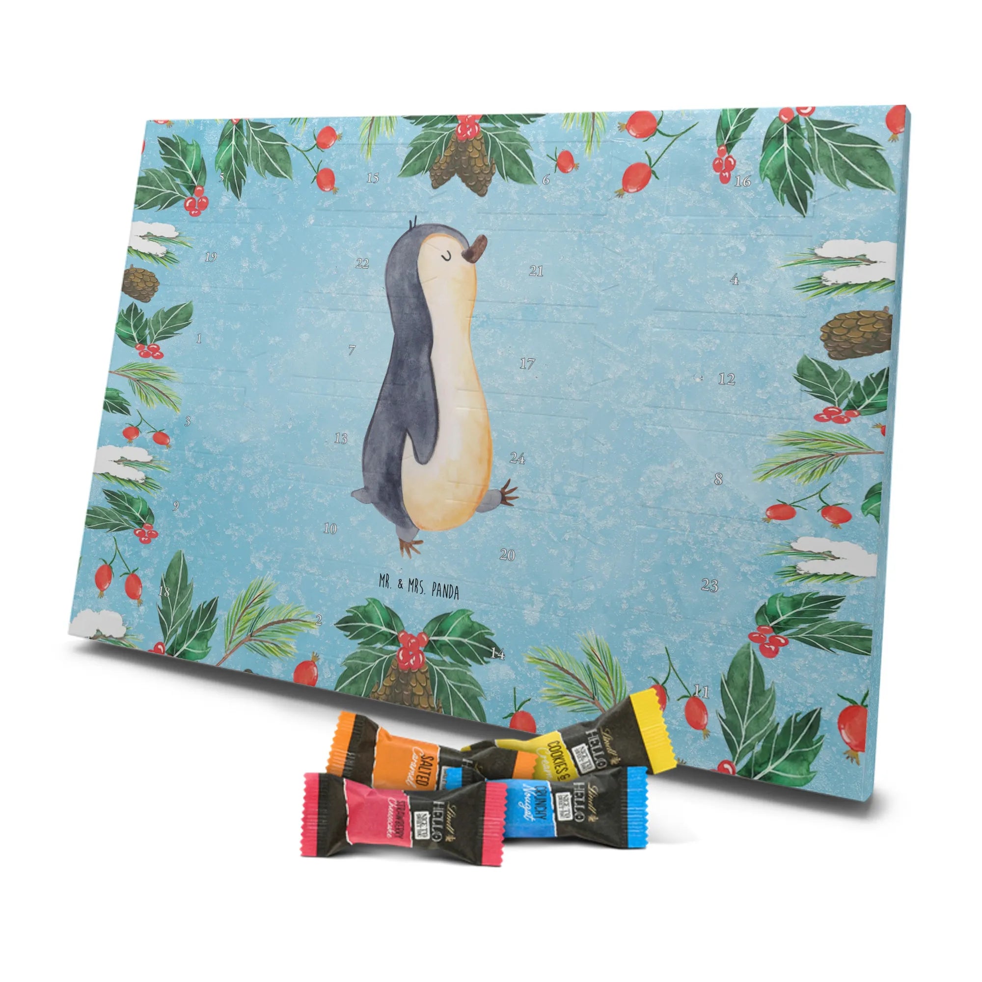 Geh auf Entdeckungsreise durch die Adventszeit mit unserem fröhlichen Schokoladen Adventskalender aus der Pinguin - Kollektion von Mr. & Mrs. Panda. Der niedliche, handgezeichnete Pinguin marschiert über einen Kreidetafel-Hintergrund und trägt den liebevollen Spruch: „Ich möchte einen Pinguin, der mir applaudiert, wenn ich morgens aufstehe.“ – ein perfekter Start in den Tag für Frühaufsteher und Langschläfer.