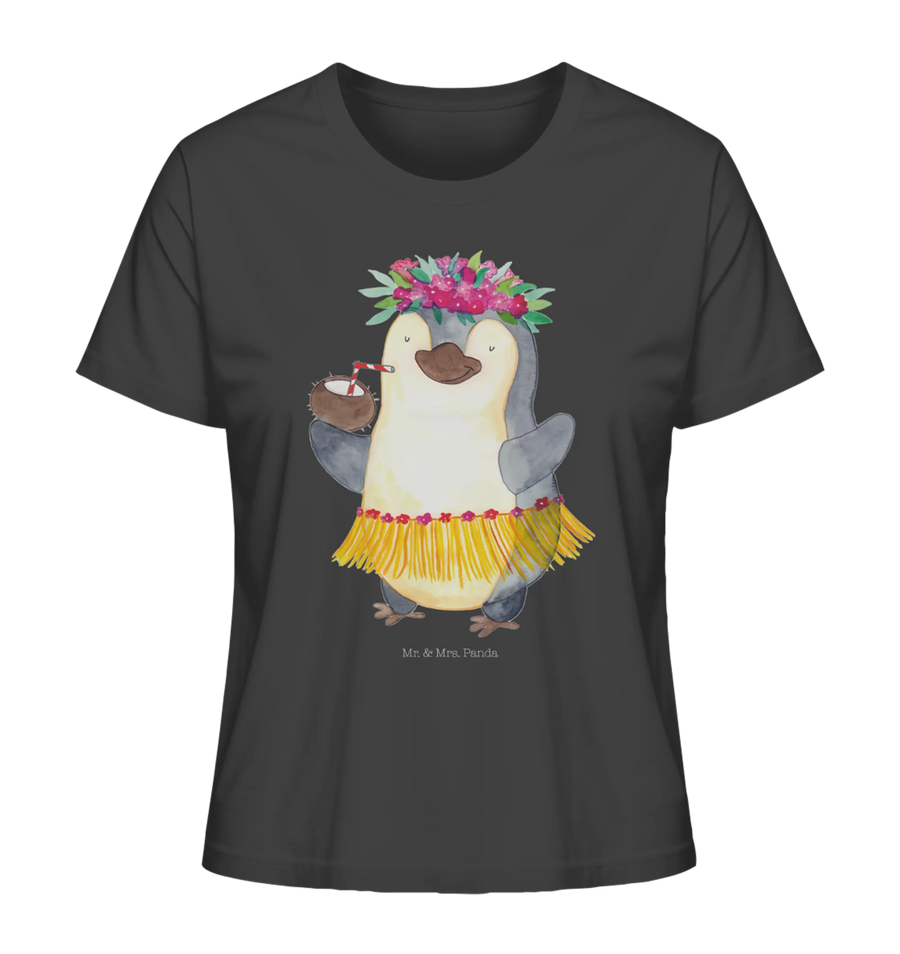 Bring Sonne in deinen Kleiderschrank: Unser Shirt Damen mit dem liebevollen Pinguin Kokosnuss Motiv aus der Pinguin - Kollektion von Mr. & Mrs. Panda verbindet fröhliches Design mit Alltagskomfort. Auf dem schwarzen Rundhals-Shirt tanzt ein niedlicher Pinguin mit Kokosnuss und versprüht echtes Hawaii- und Urlaub-Feeling.