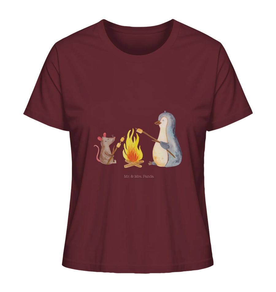 Shirt Damen Pinguin Lagerfeuer - Größe S - Burgundy