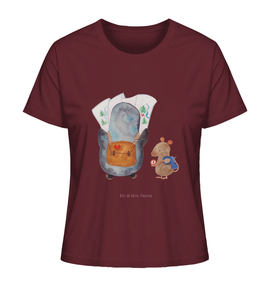 Shirt Damen Pinguin & Maus Wanderer - Größe S - Burgundy