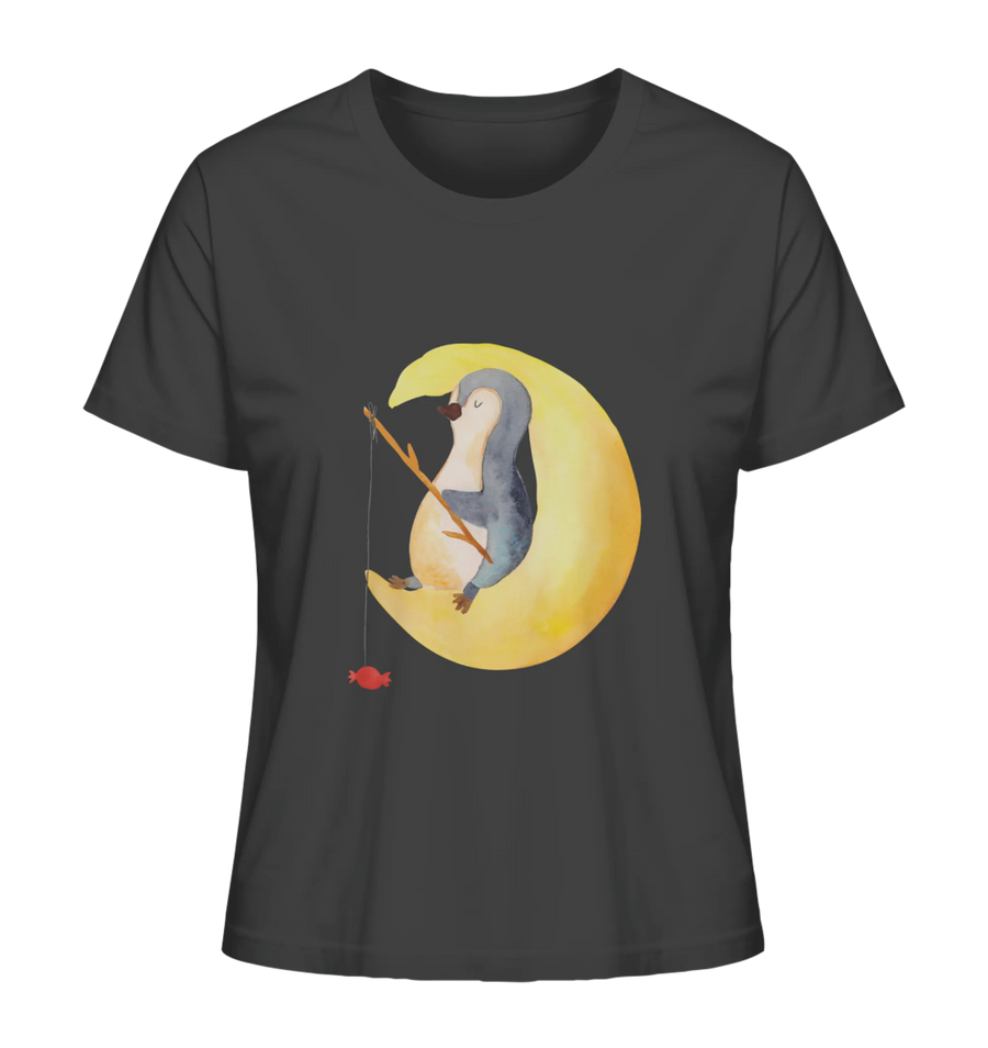 Shirt Damen Pinguin Mond - Größe S - Anthrazit