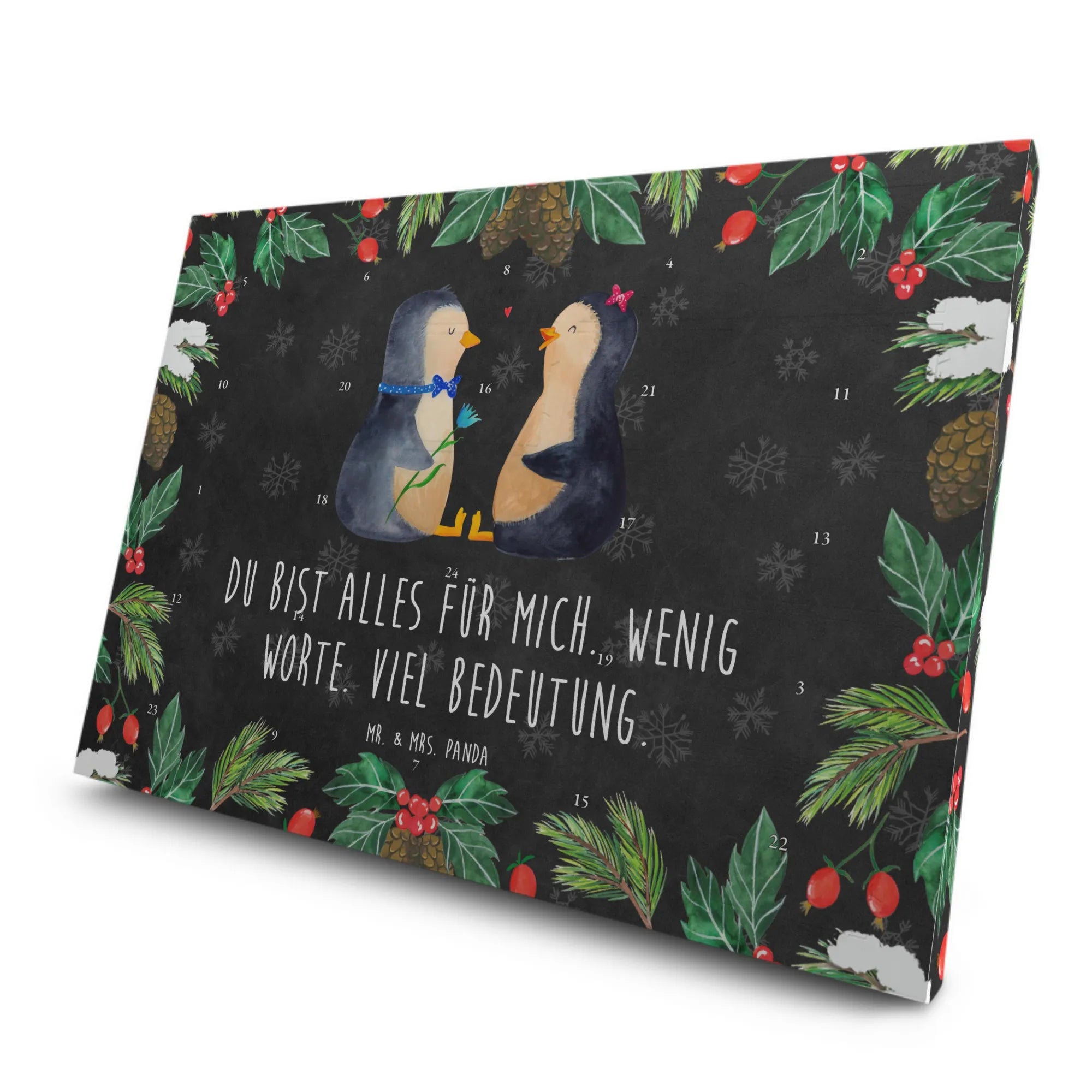 Der Tee Adventskalender "Pinguin Pärchen" von Mr. & Mrs. Panda ist das perfekte Geschenk für Verliebte und all jene, die die Liebe feiern möchten! 🎁 Mit seinem niedlichen Motiv von zwei süßen Pinguinen, die sich liebevoll gegenüber sitzen, versüßt dieser Kalender die Vorweihnachtszeit auf ganz besondere Weise. Die beiden Pinguine strahlen pure Lebensfreude aus und erzählen eine zauberhafte Liebesgeschichte, die Herzen höherschlagen lässt.
