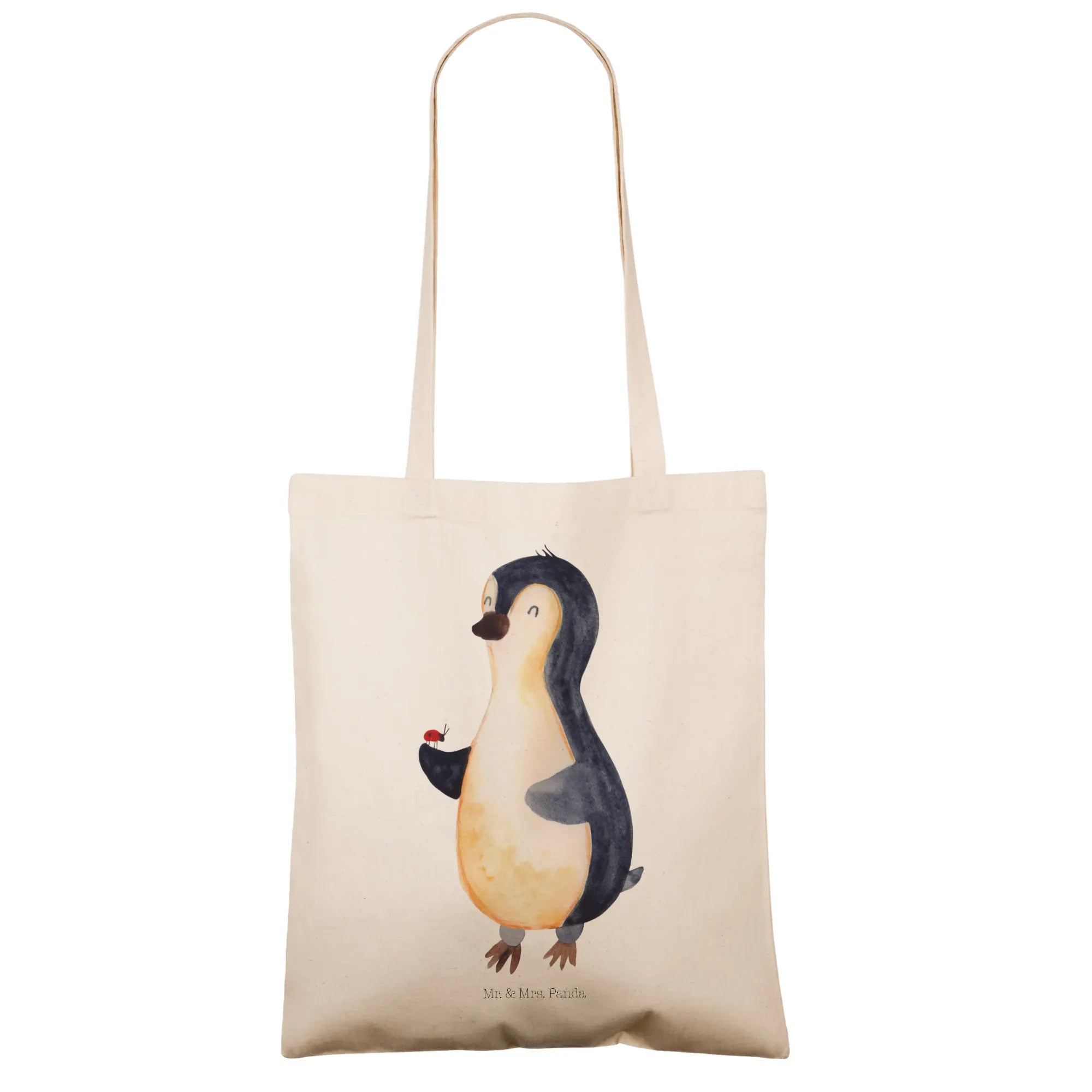 Die wunderschöne Tragetasche Pinguin Marienkäfer von Mr. & Mrs. Panda ist das perfekte Geschenk für all jene, die Freude, Liebe und eine Prise Wunder in ihrem Alltag suchen. Mit einem fröhlichen Pinguin, der einen kleinen Marienkäfer auf seiner Flosse hält, bringt diese Tasche nicht nur Farbe und gute Laune in dein Zuhause, sondern ist auch ein praktischer Begleiter fürs Leben.