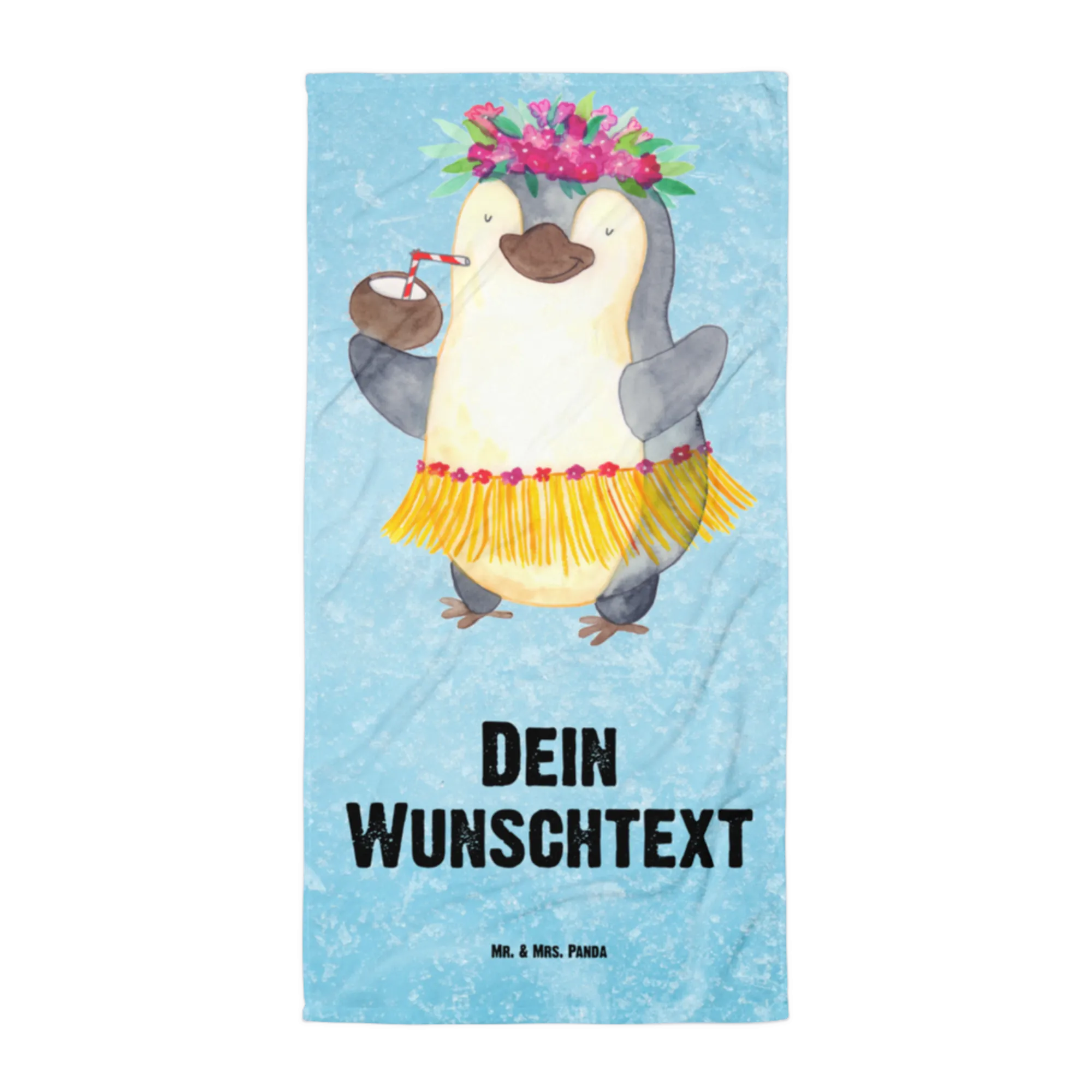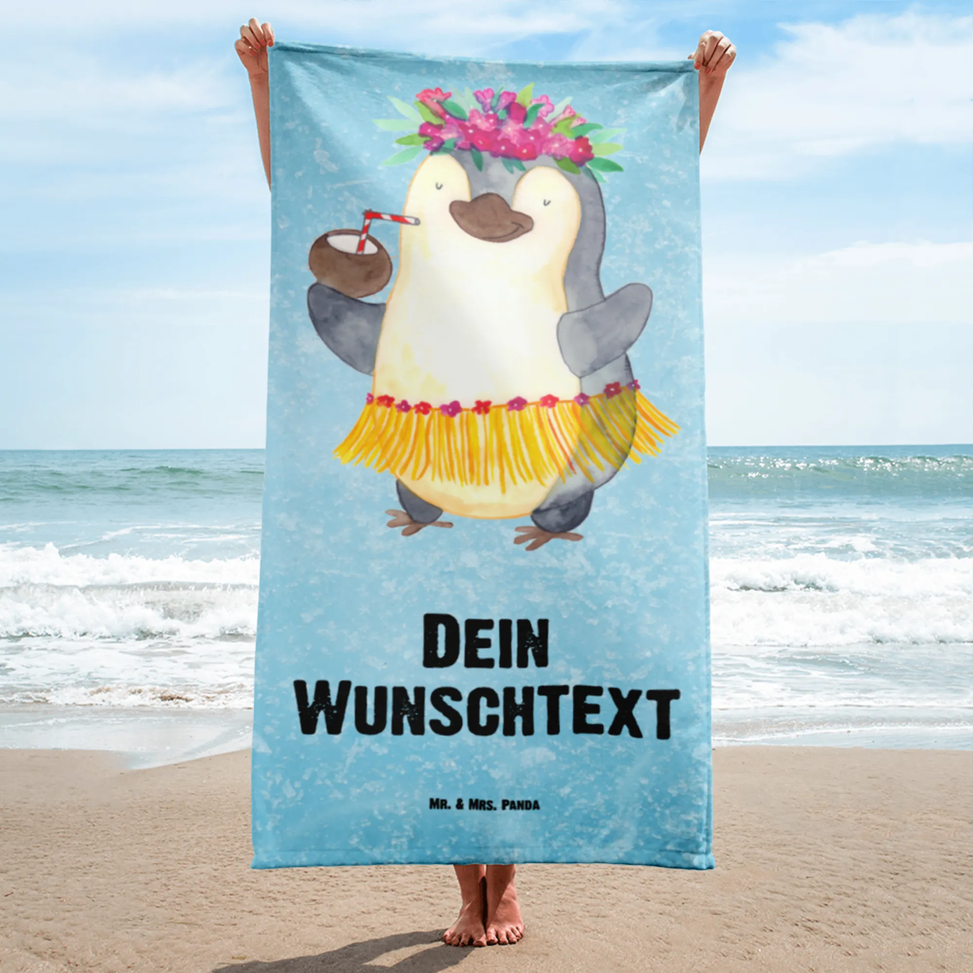 XXL Badehandtuch mit Namen Pinguin Kokosnuss – Mr. & Mrs. Panda