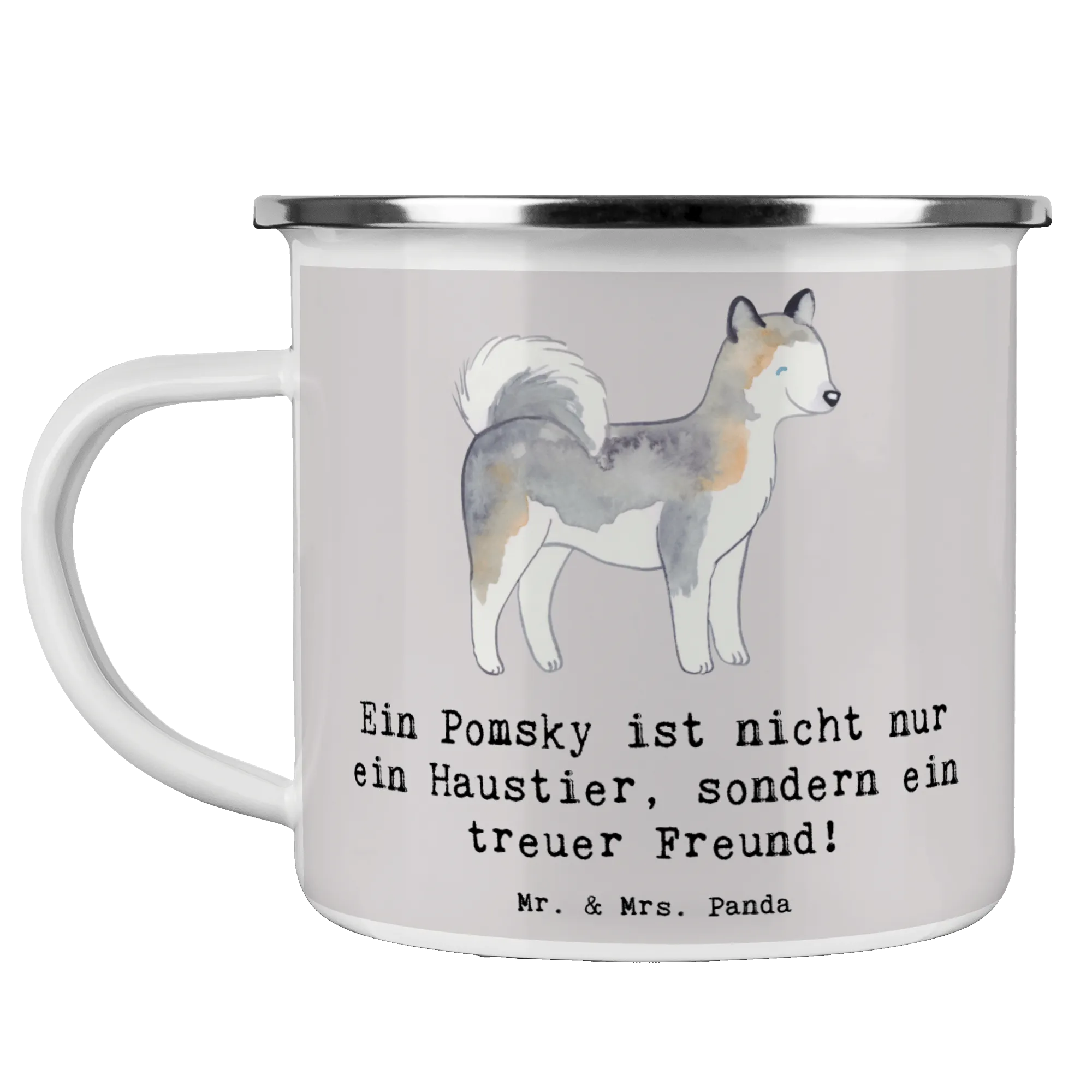 Du liebst Camping und deinen treuen Pomsky? Dann ist die Camping Emaille Tasse von Mr. & Mrs. Panda genau das Richtige für dich! Diese wunderschöne und beständige Emaille Tasse ist nicht nur ein praktischer Begleiter für deine Outdoor-Abenteuer, sondern auch ein liebevolles Accessoire, das jeden Hundefan begeistert. Mit dem charmanten Spruch 'Ein Pomsky ist nicht nur ein Haustier, sondern ein treuer Freund!' erinnert dich diese Tasse immer an die besondere Verbindung zu deinem pelzigen Freund.
